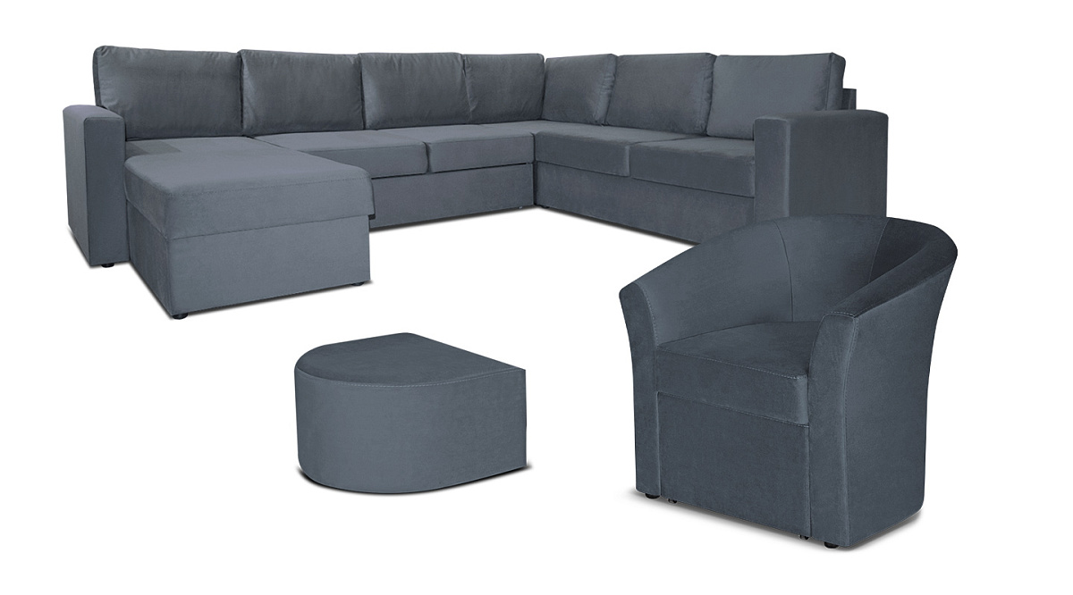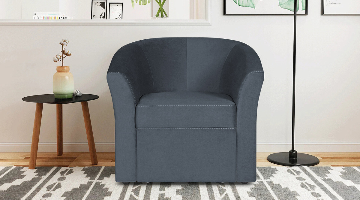 Кресло Андерсен с пуфом Темно серый велюр