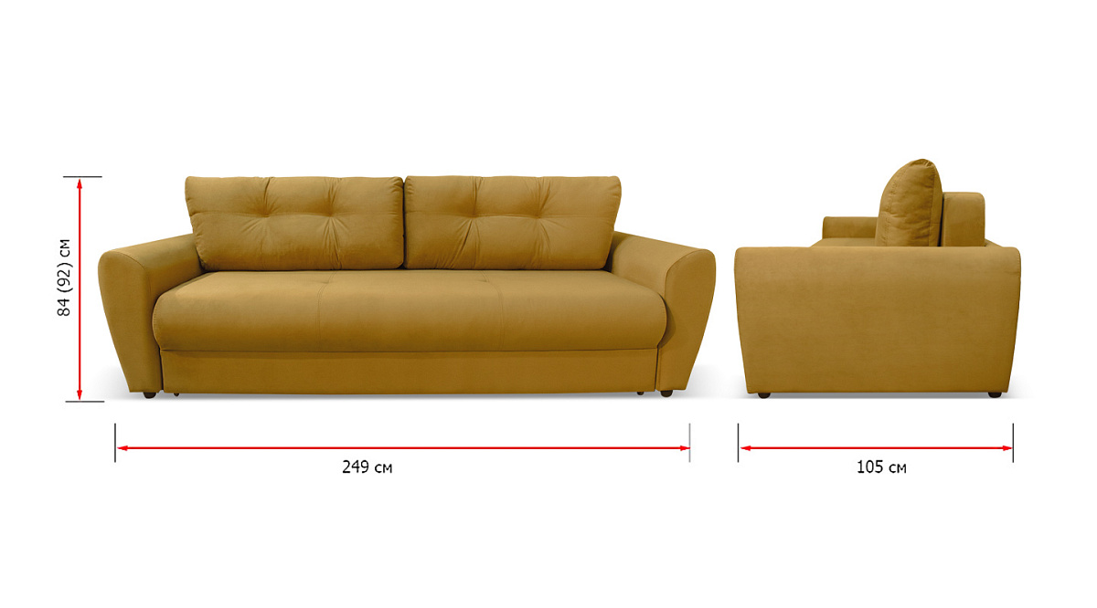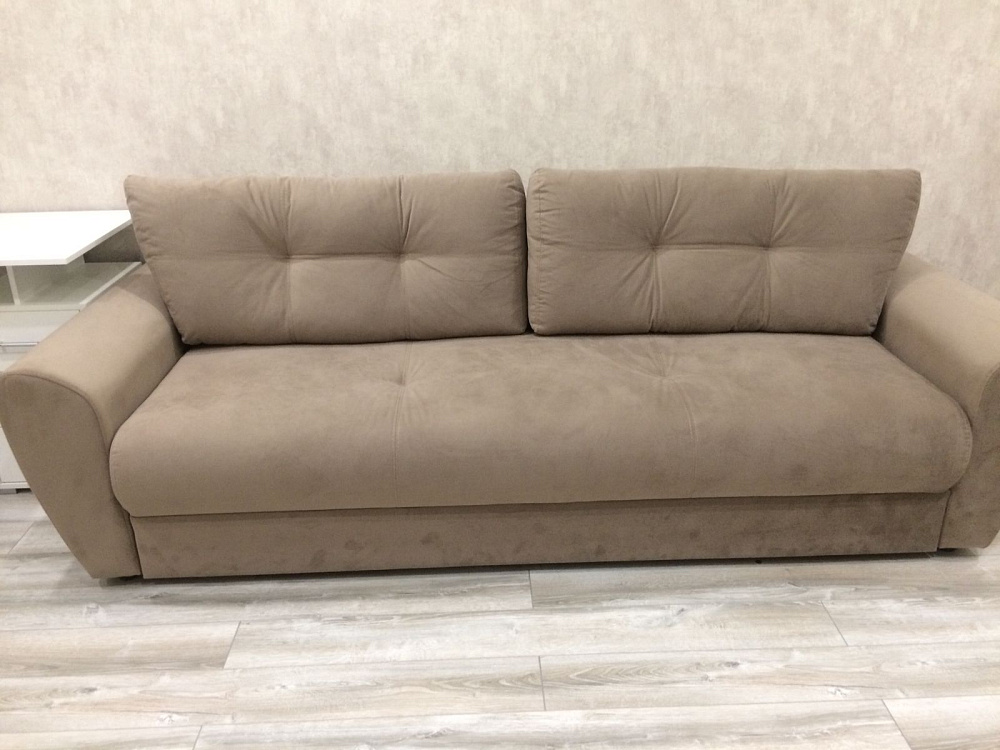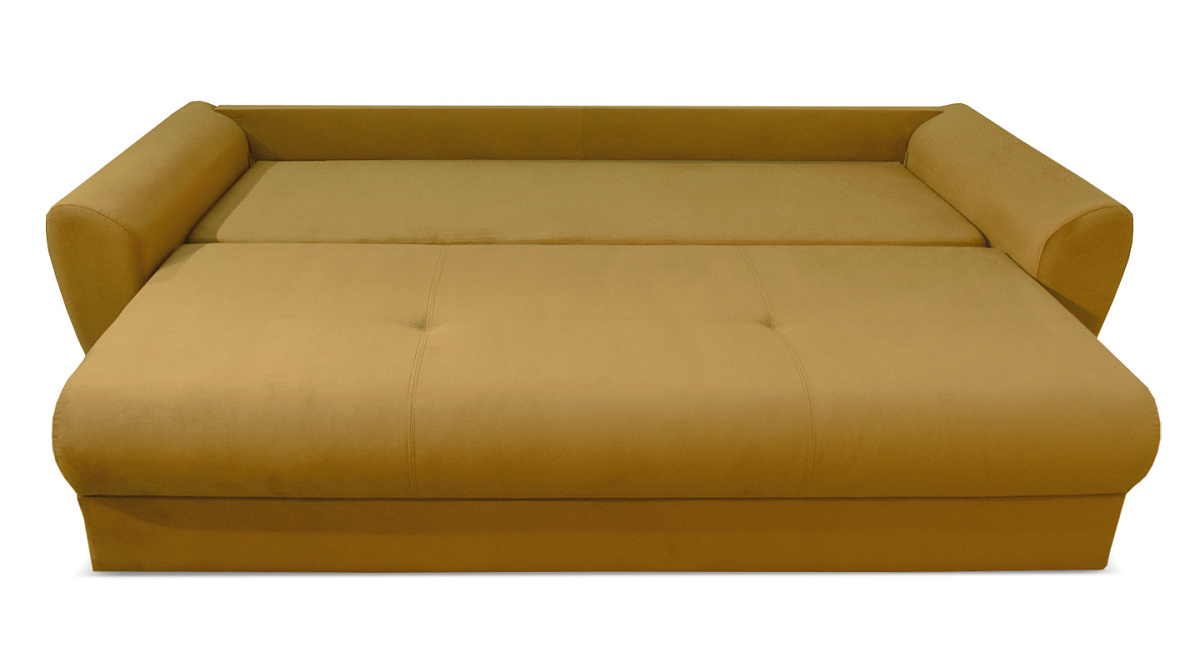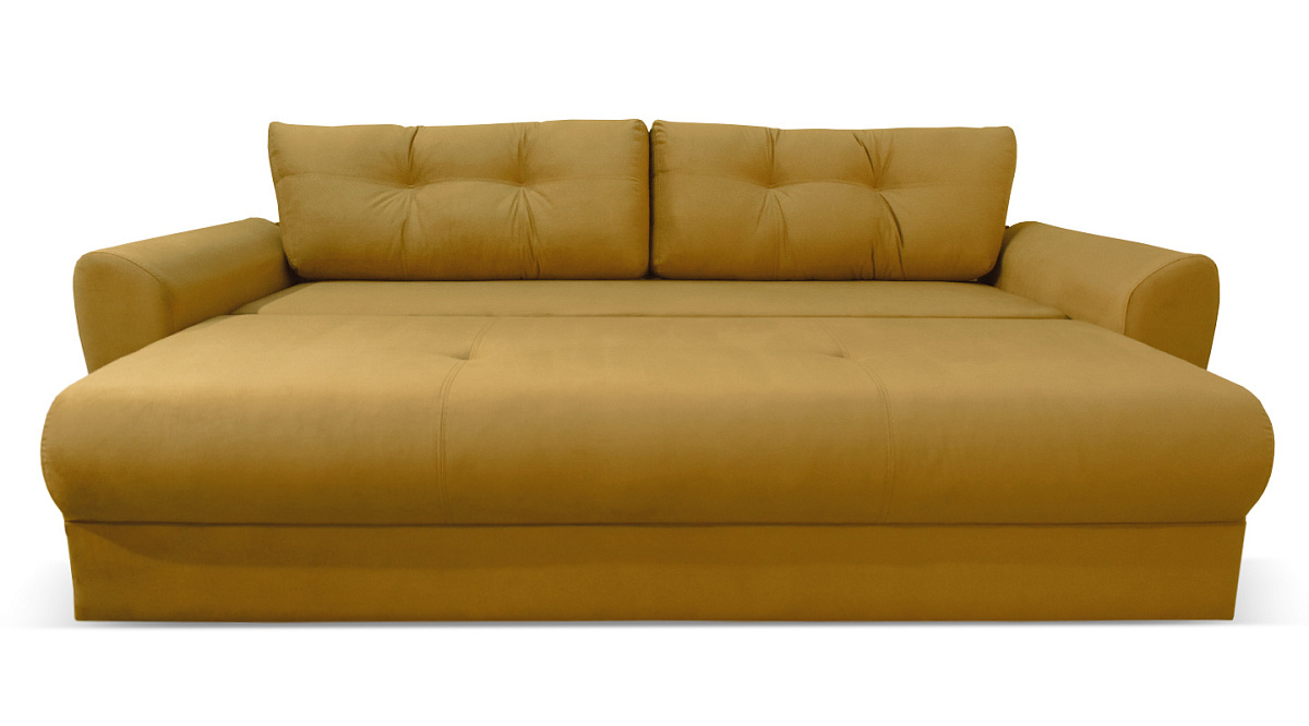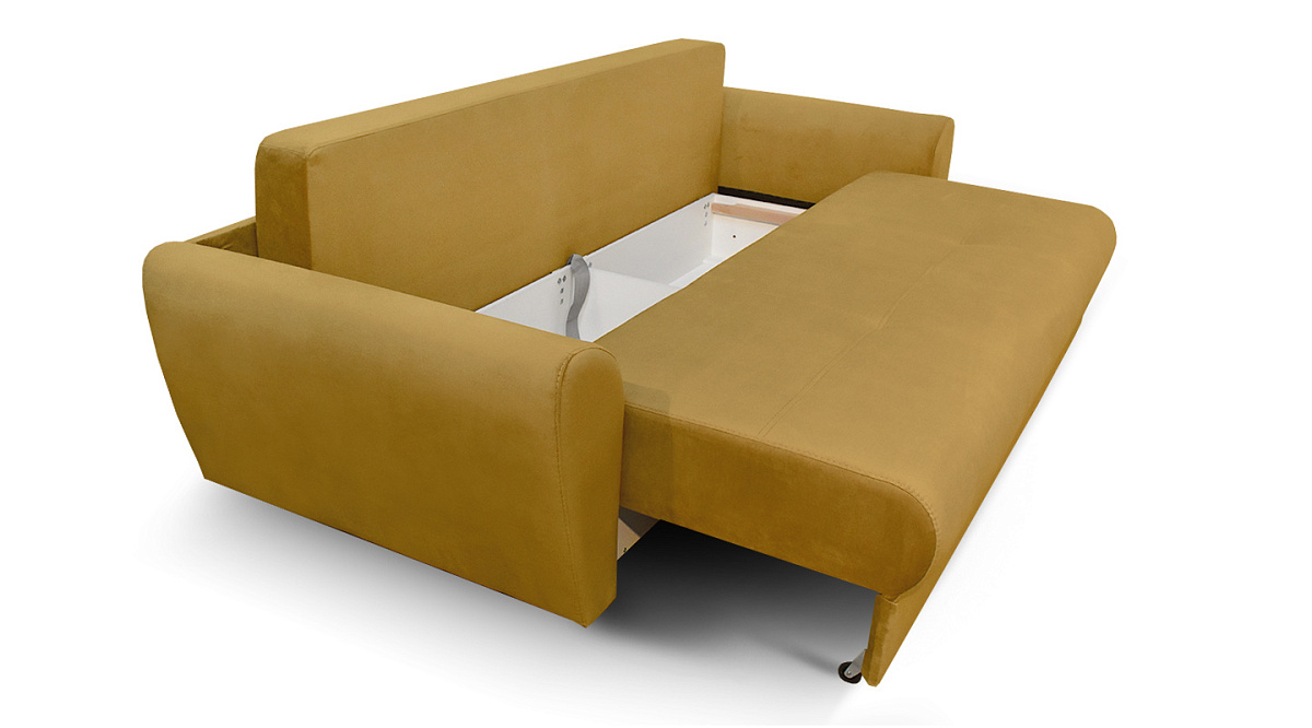 Механизм трансформации дивана - классическая “еврокнижка”. С его помощью за несколько секунд сидение превращается в двуспальную кровать. Спальное место получается ровным, в меру мягким и упругим, ведь в основе наполнителя - пружинный блок “Боннель” и ППУ высокой плотности.