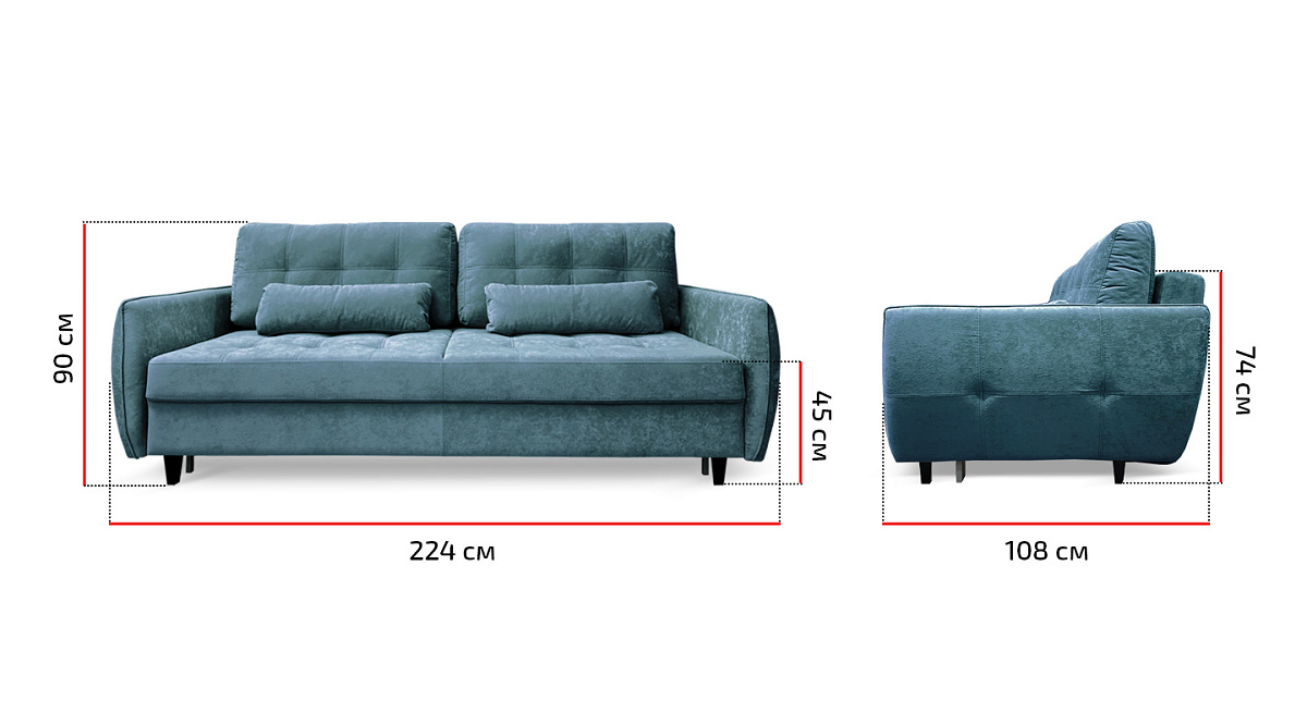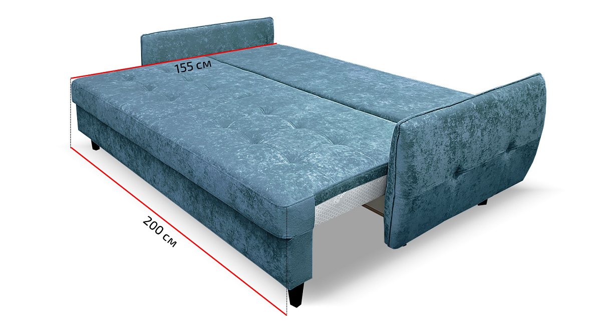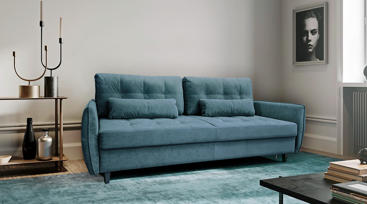 Диван прямой Ультра Сине-голубой велюр
