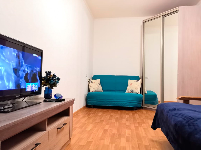 Одно из основных качеств, влияющих на выбор дивана “аккордеон” - его небольшие размеры. Он подходит для небольших помещений. Отсутствие подлокотников, в этом случае, несомненное преимущество - свободного пространства остается больше на 30-50 см, которое бы эти подлокотники и заняли. Кроме того, визуально комната с такими диваном кажется больше.