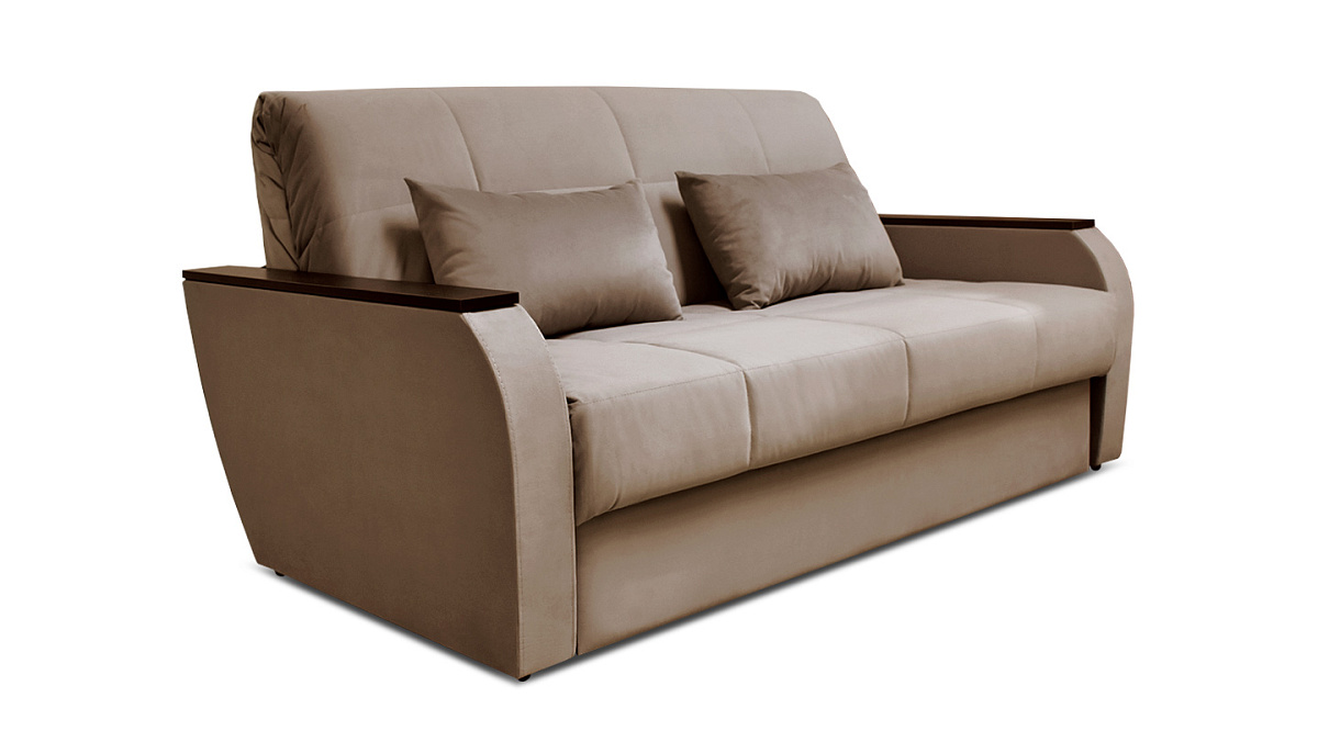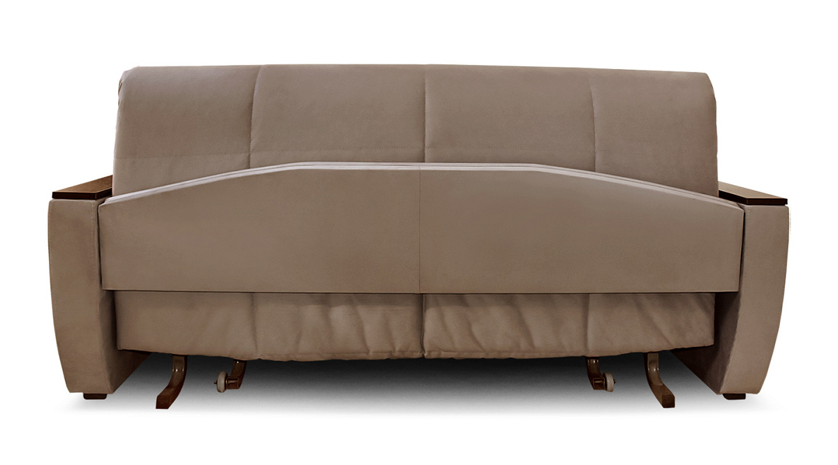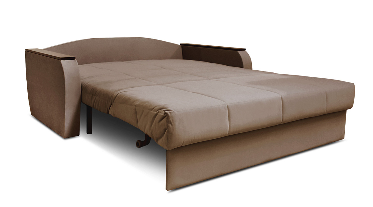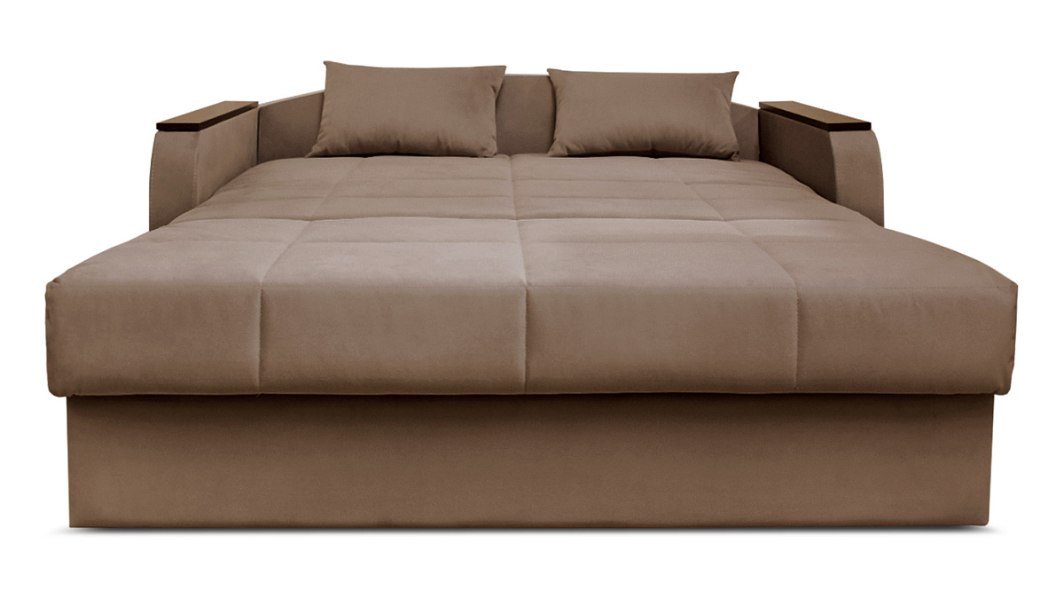 Диван раскладывается в абсолютно ровное, без щелей и стыков, спальное место и его в основном используют как кровать. Чтобы разложить этот диван, достаточно лишь потянуть его на себя, не прикладывая при этом никаких усилий.