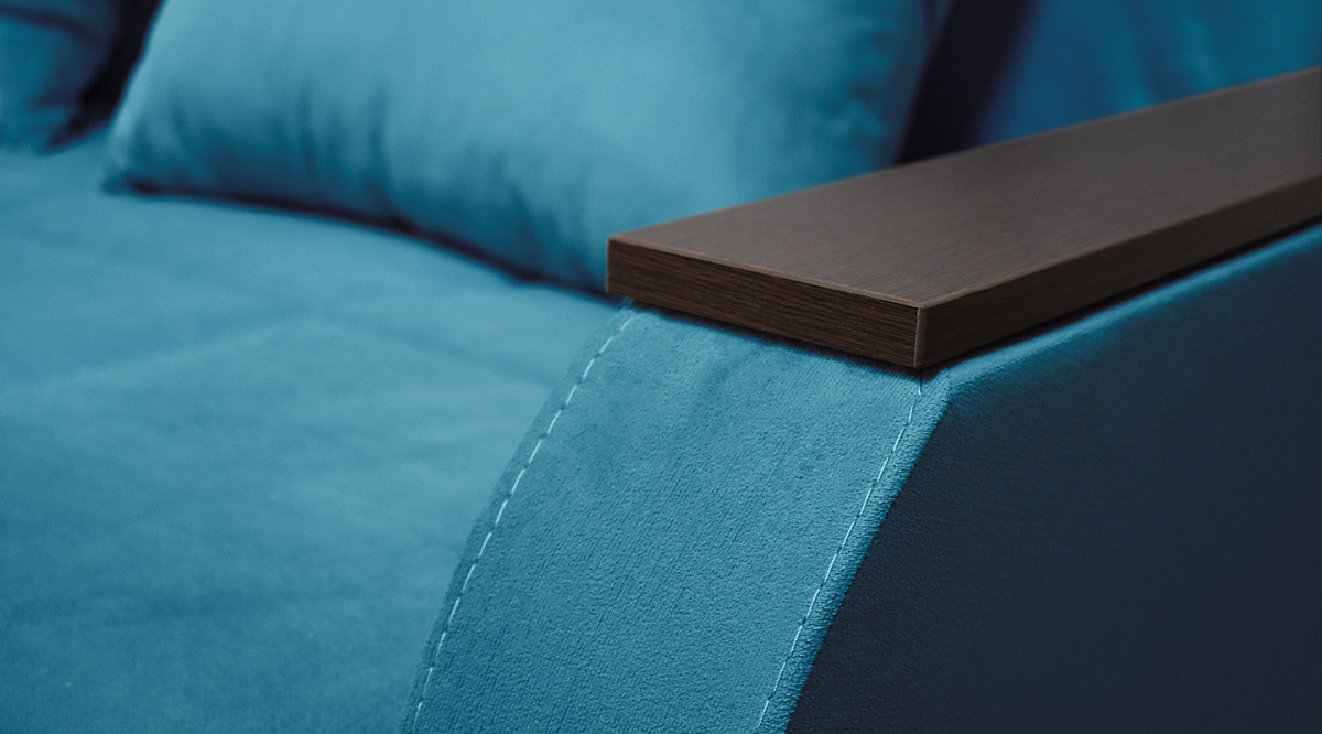 Деревянные накладки на подлокотниках заменят собой кофейный столик. На них можно поставить кружку, положить гаджеты, книги, крема. Сама вставка выполнена из ДСП, а её кромка - из ПВХ. Это препятствует расслоению и порче материала при его активном использовании и влажной уборке. Всё нужное с такими подлокотниками, всегда под рукой. Лишний раз вставать и идти за этими вещами не надо. Можно расслабиться.