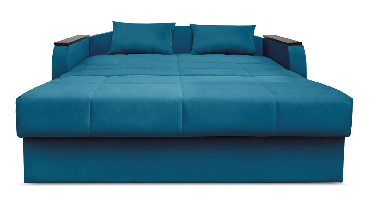 Диван раскладывается в абсолютно ровное, без щелей и стыков, спальное место и его в основном используют как кровать. Чтобы разложить этот диван, достаточно лишь потянуть его на себя, не прикладывая при этом никаких усилий.