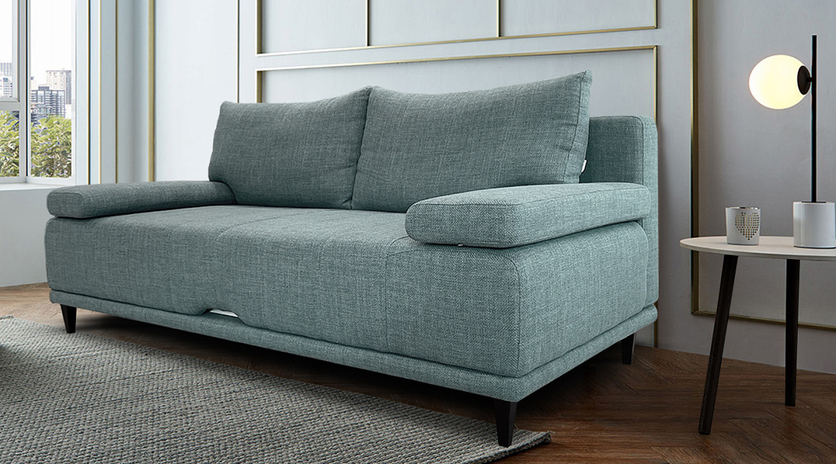 Диван прямой Даллас Пудрово/Зеленый рогожка
