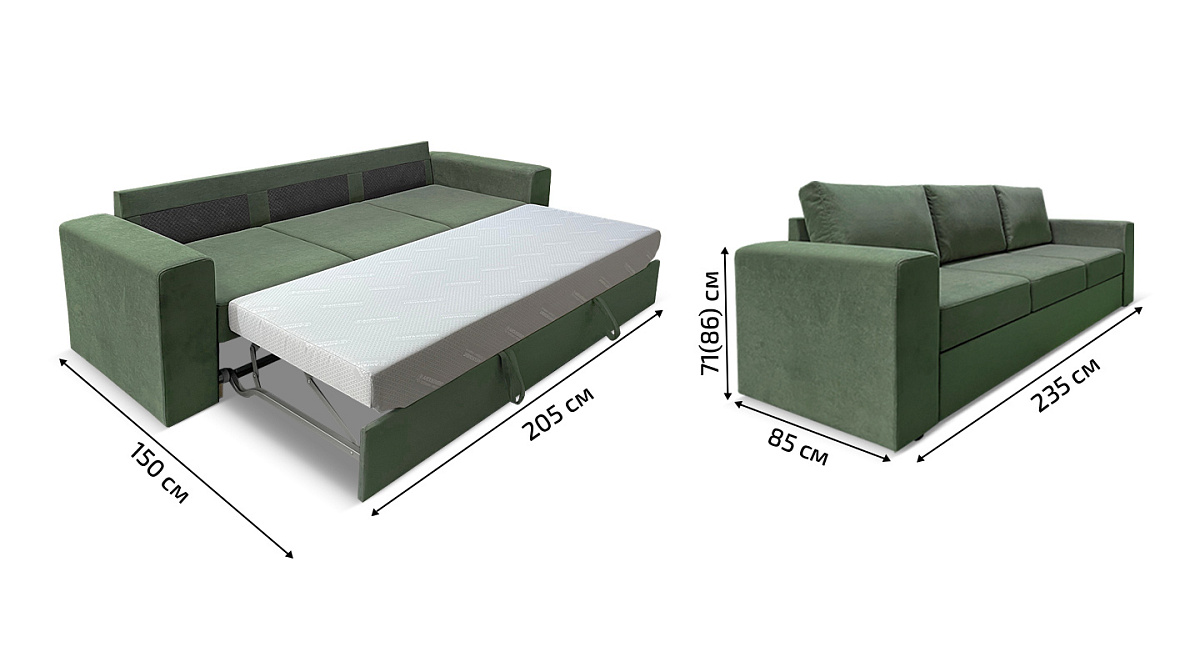 Прямой диван Йеллинг 2 Велюр Зеленый