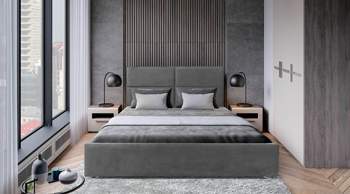 Кровать Йорк Серый велюр