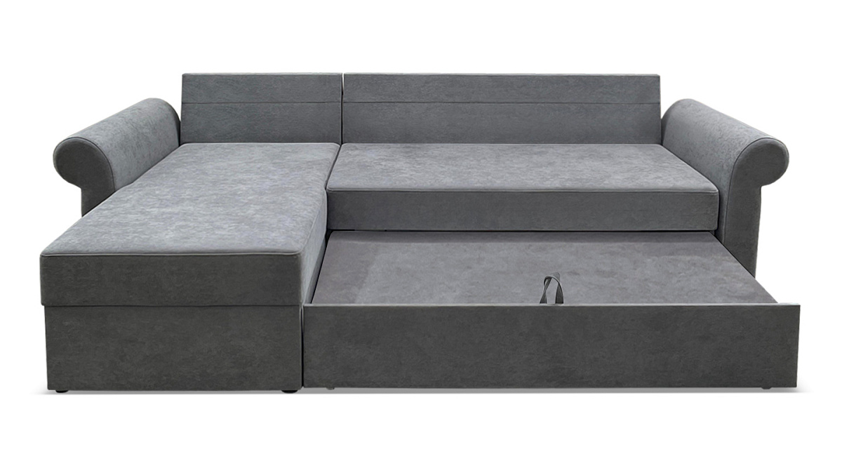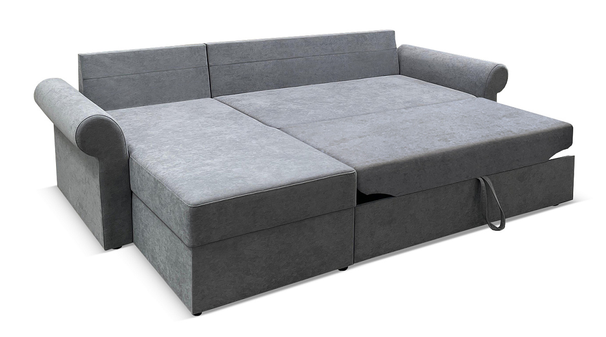 Классический угловой диван решает проблемы ограниченного пространства. Днем – это уютное место для приёма гостей или приятного отдыха в кругу семьи. Ночью – полноценная двуспальная кровать. Долговечная и практичная система трансформации «дельфин» предназначена для ежедневного использования.