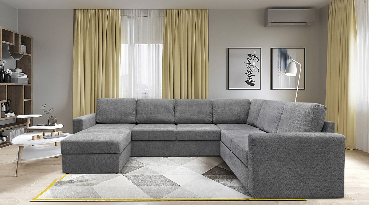 Большой диван для гостиной нужен для того, чтобы на нем поместились все. И всем было комфортно. Эта модель дивана надежна и выдерживает значительные нагрузки. В меру мягкий и упругий. И будет как новый даже спустя годы, без просиженных мест и ямок.