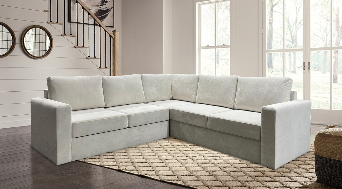 Угловой диван Ольборг Молочный велюр плюш
