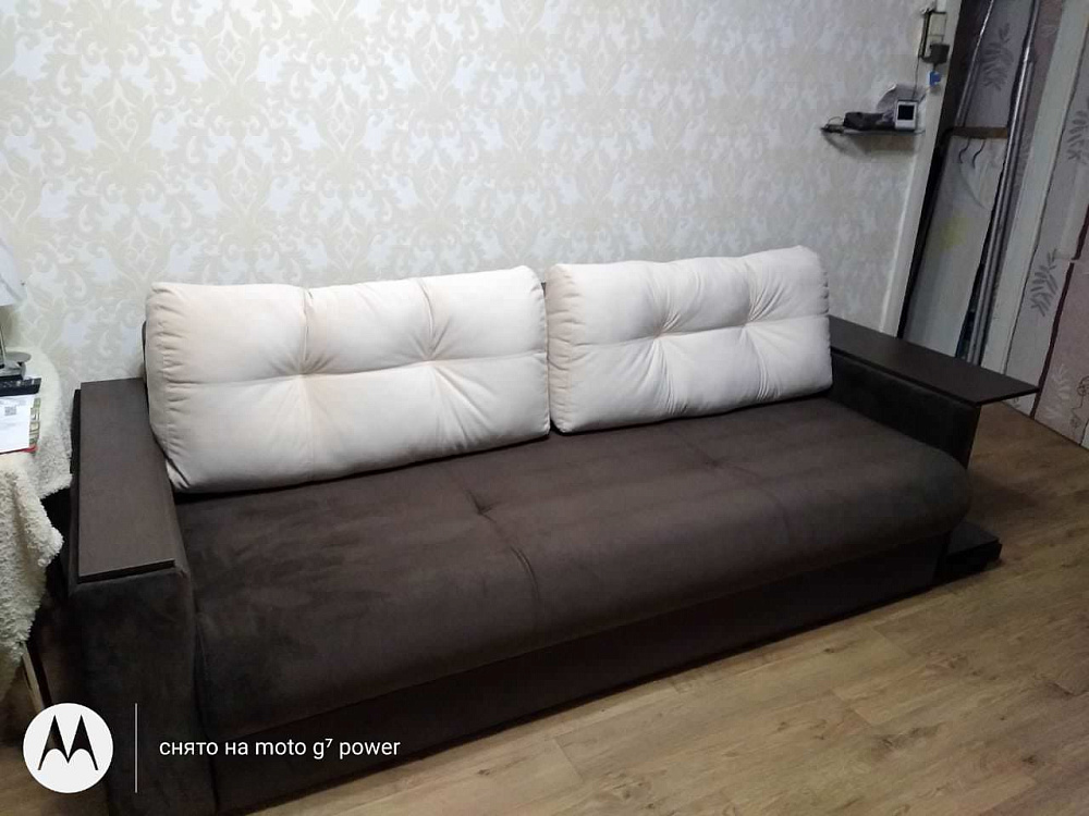 Деревянные подлокотники отличаются от тканевых тем, что их поверхность не так быстро загрязняется. Их гораздо легче чистить - достаточно протереть влажной тряпочкой с мылом или без. Но главное преимущество широких деревянных подлокотников - возможность использования их поверхности в качестве столика: журнального или кофейного. Всё нужное с такими подлокотниками, всегда под рукой. Лишний раз вставать и идти за этими вещами не надо. Можно расслабиться.