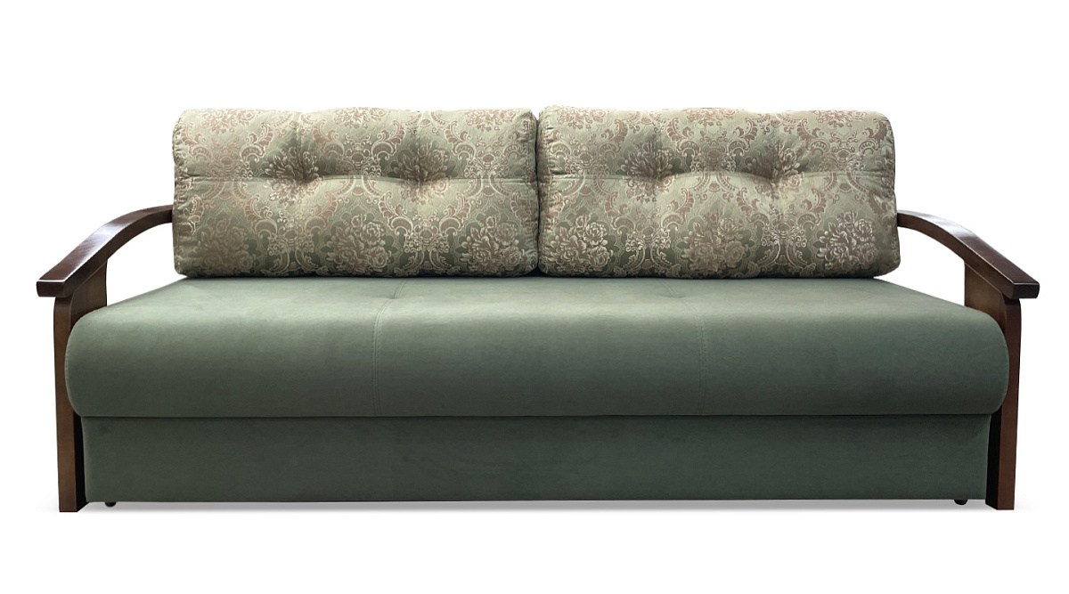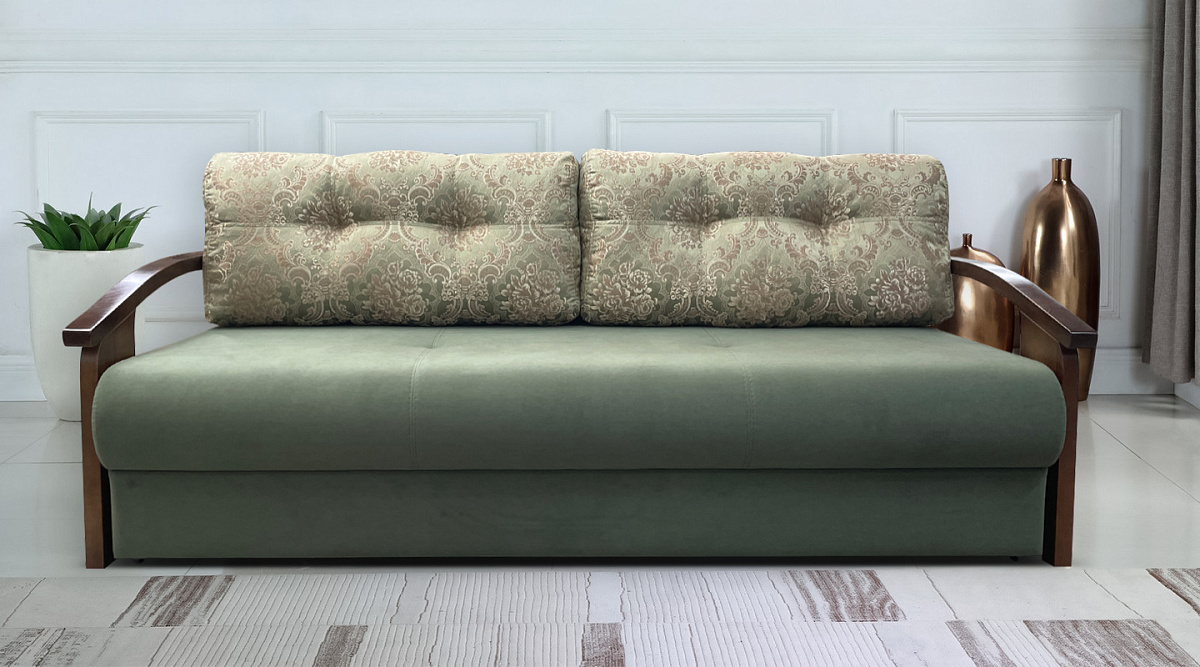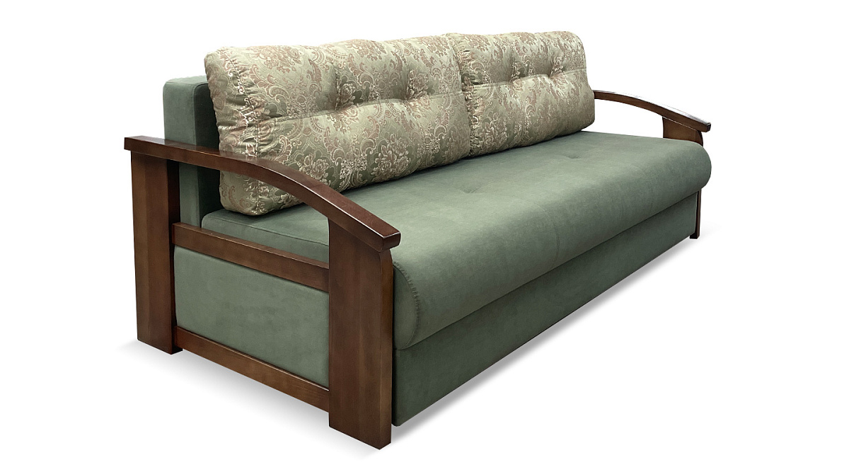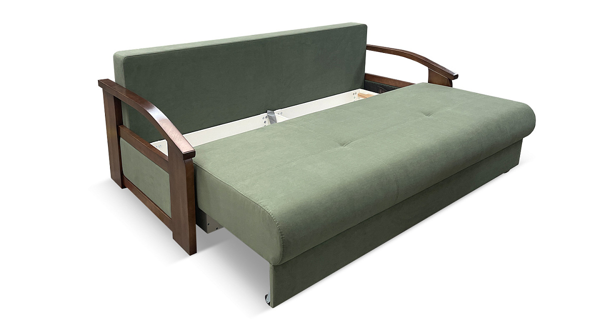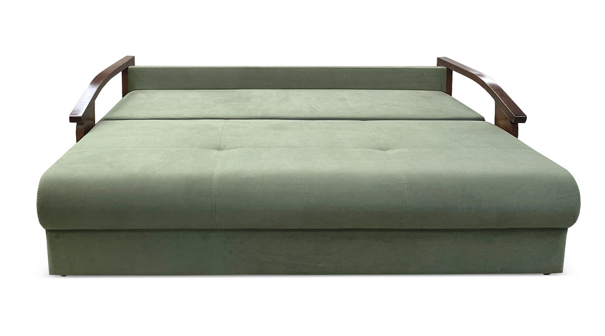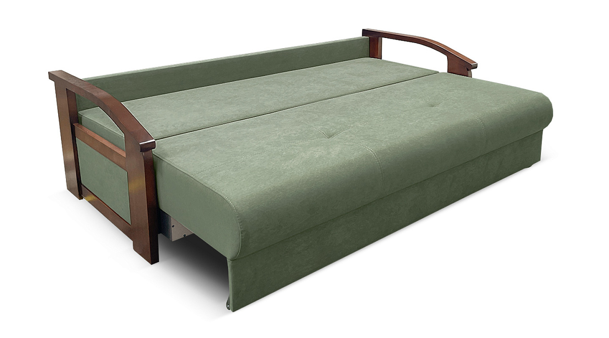 Это плотная древесина, способная выдержать значительные нагрузки и перепады влажности и температуры. Деревянные подлокотники делают прямой диван “еврокнижка” элегантным и привлекательным.