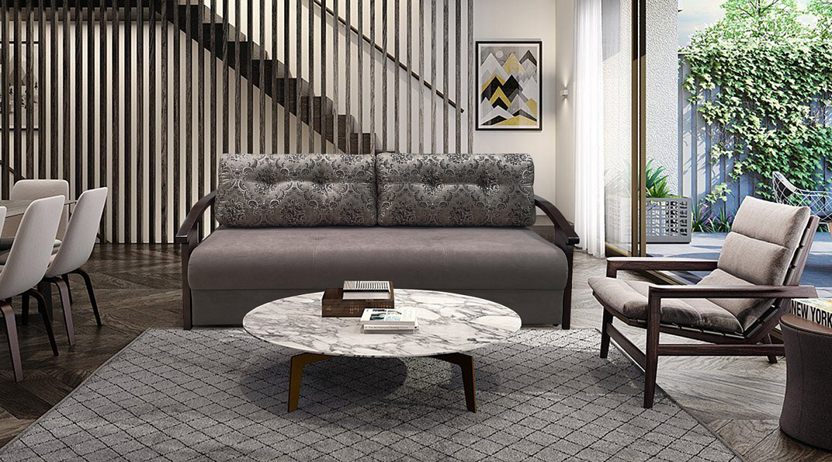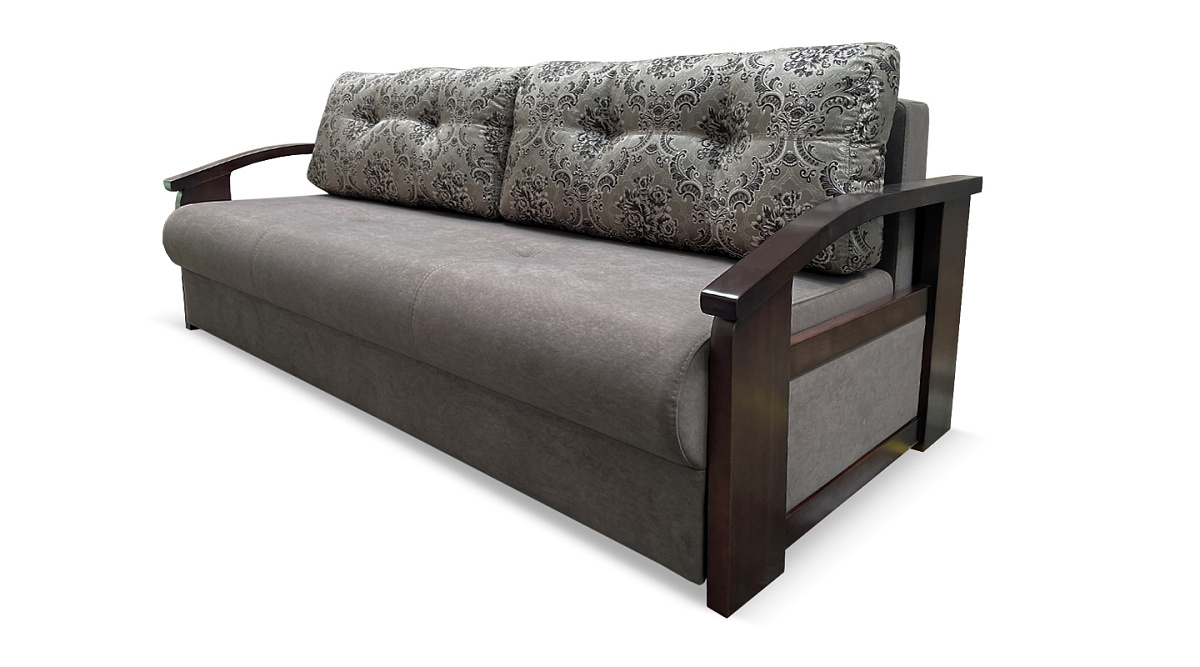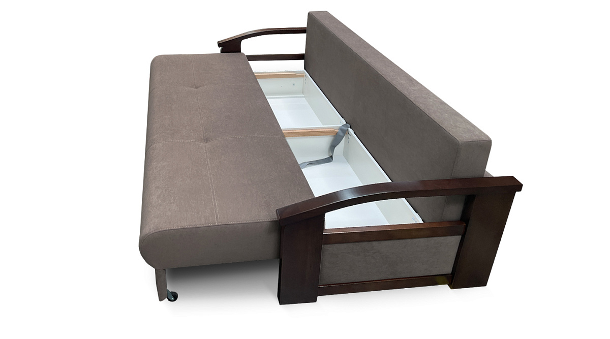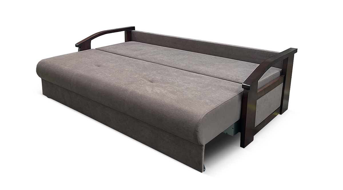 Это плотная древесина, способная выдержать значительные нагрузки и перепады влажности и температуры. Деревянные подлокотники делают прямой диван “еврокнижка” элегантным и привлекательным.