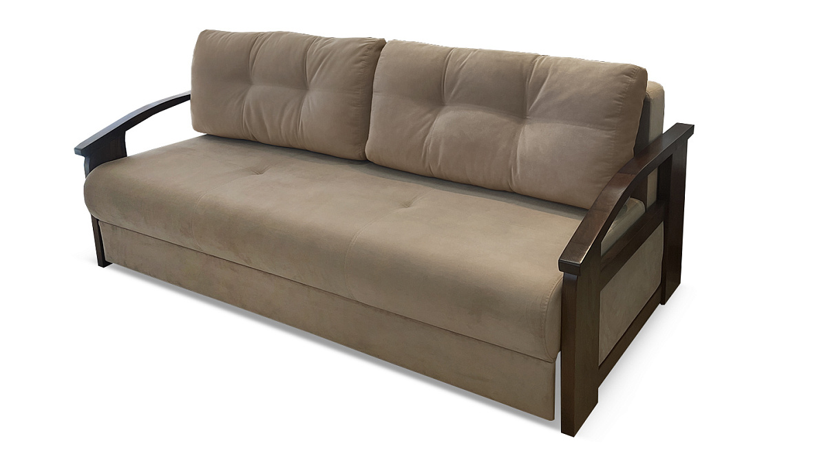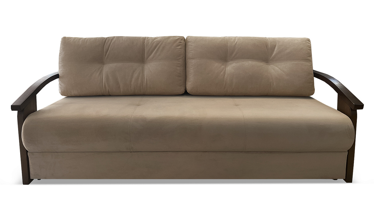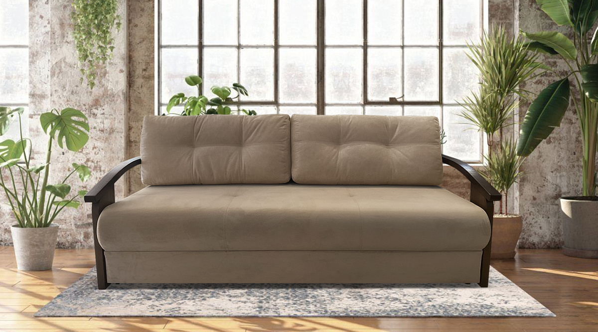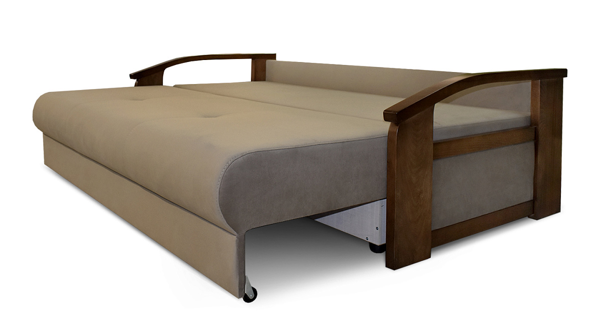 Это плотная древесина, способная выдержать значительные нагрузки и перепады влажности и температуры. Деревянные подлокотники делают прямой диван “еврокнижка” элегантным и привлекательным.