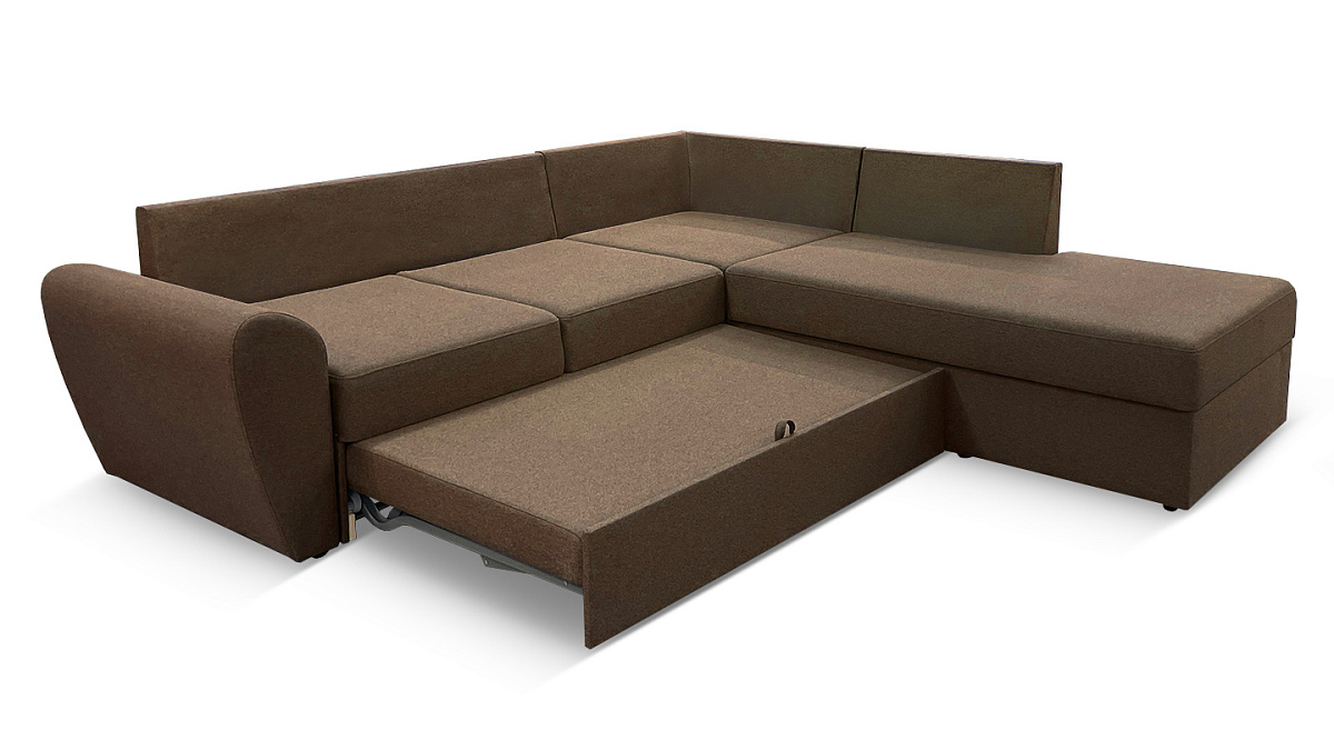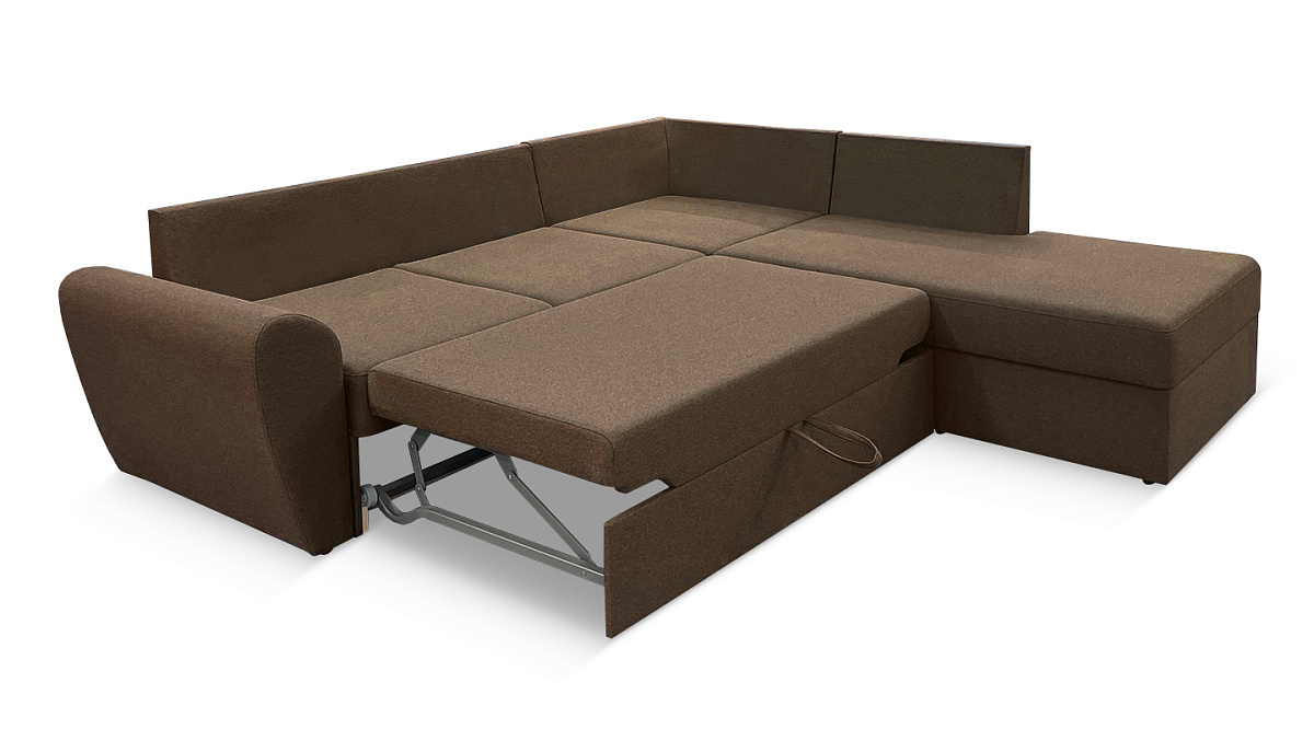 Диван легко и быстро трансформируется в двуспальную кровать. Механизм трансформации прост в обращении. Разложить его в кровать - дело нескольких секунд. Внимания заслуживают и каплевидные мягкие подлокотники. На них очень удобно облокотиться, положить голову вместо подушки. Повышенные удобства большого дивана обеспечиваются применением современных технологий изготовления мебели. Матрас наполняется мягким и упругим мебельным пенополеуританом высокой плотности, благодаря которой он успешно противостоит нагрузкам и легко восстанавливает свою форму.
