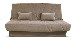 Отсутствие подлокотников и наличие короба для постельного белья экономят пространство. В короб можно сложить сезонные вещи, постельные принадлежности и другие предметы - то есть шкафы и тумбочки для них уже не нужны. Вместо громоздких подлокотников - две декоративные подушки, на которые можно прилечь, положить под спину.