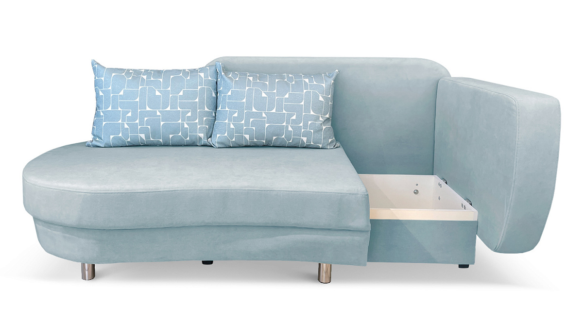 Кроме того, конструкция предполагает наличие ящика для белья. И это ещё один “плюс” в пользу недорогого дивана маленького размера.