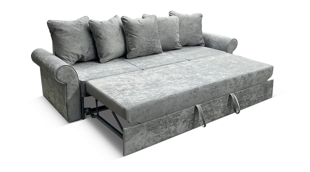 Этот диван прекрасно подходит для сна. Он легко раскладывается благодаря механизму “дельфин”. Достаточно потянуть шлейку на себя, чтобы появилось спальное место.