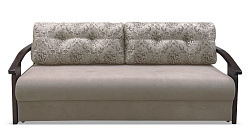 Модель представлена в нейтральный серых оттенках и ярких цветочных узорах на бежевом фоне. Диван отлично подойдет и для зонирования комнаты, и для нейтральных простых интерьеров. Он всегда будет в центре внимания.