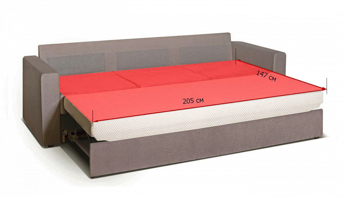 Диван "Йеллинг" оснащен механизмом "Дельфин", который позволяет легко и быстро превратить его в удобное спальное место. Вам нужно лишь потянуть за специальную ручку, и сиденье поднимется, превращаясь в горизонтальное ложе. Рекомендованная нагрузка на одно спальное место составляет 120 кг.