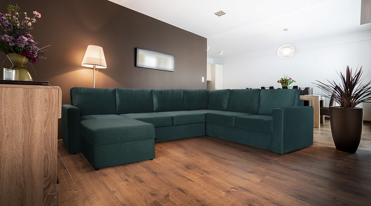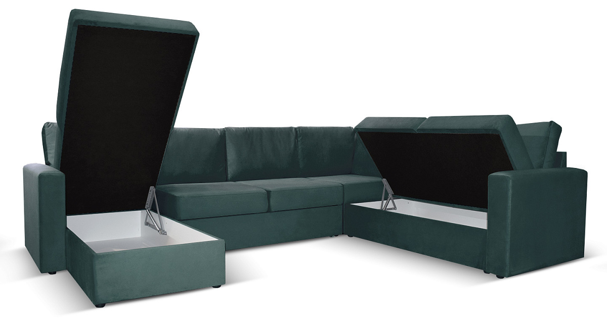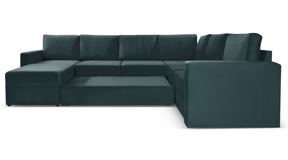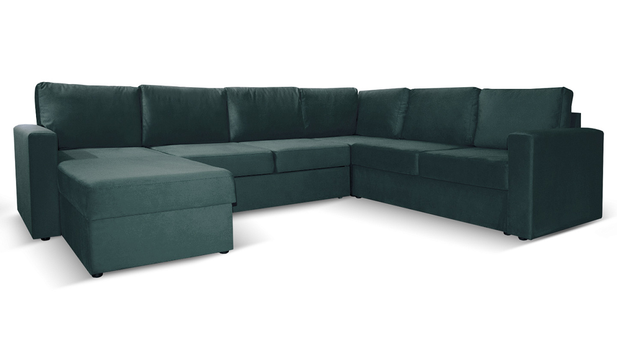 П-образный диван Кольдинг Темно-зеленый велюр