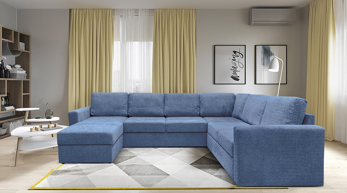 П-образный диван Кольдинг Синий букле