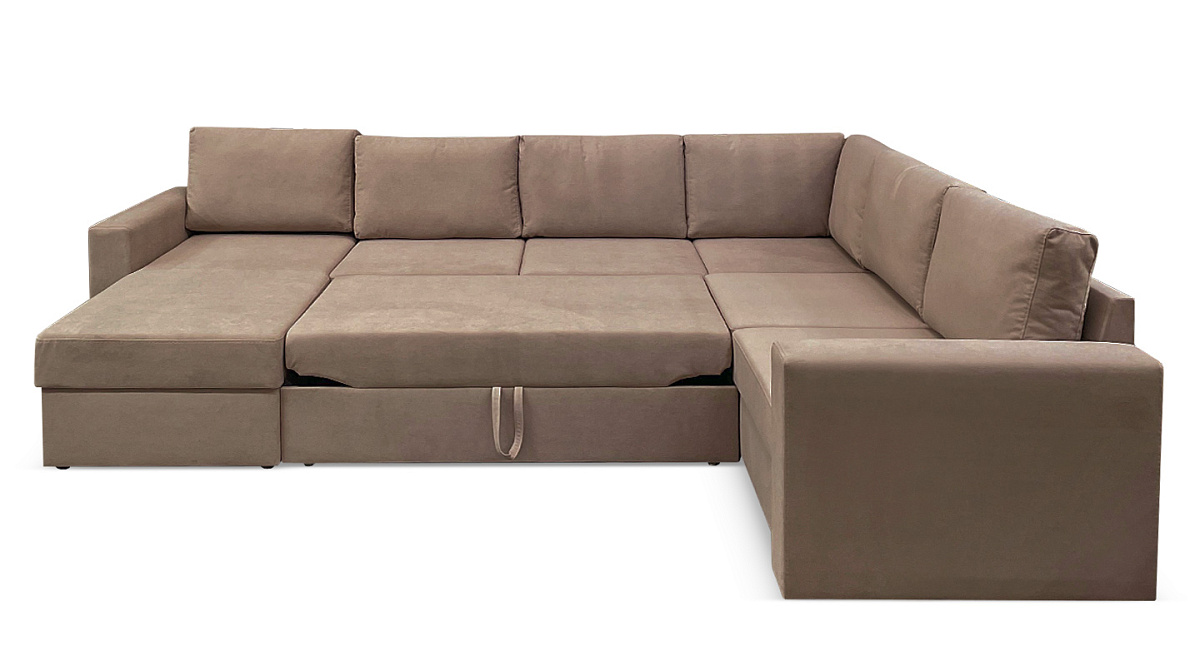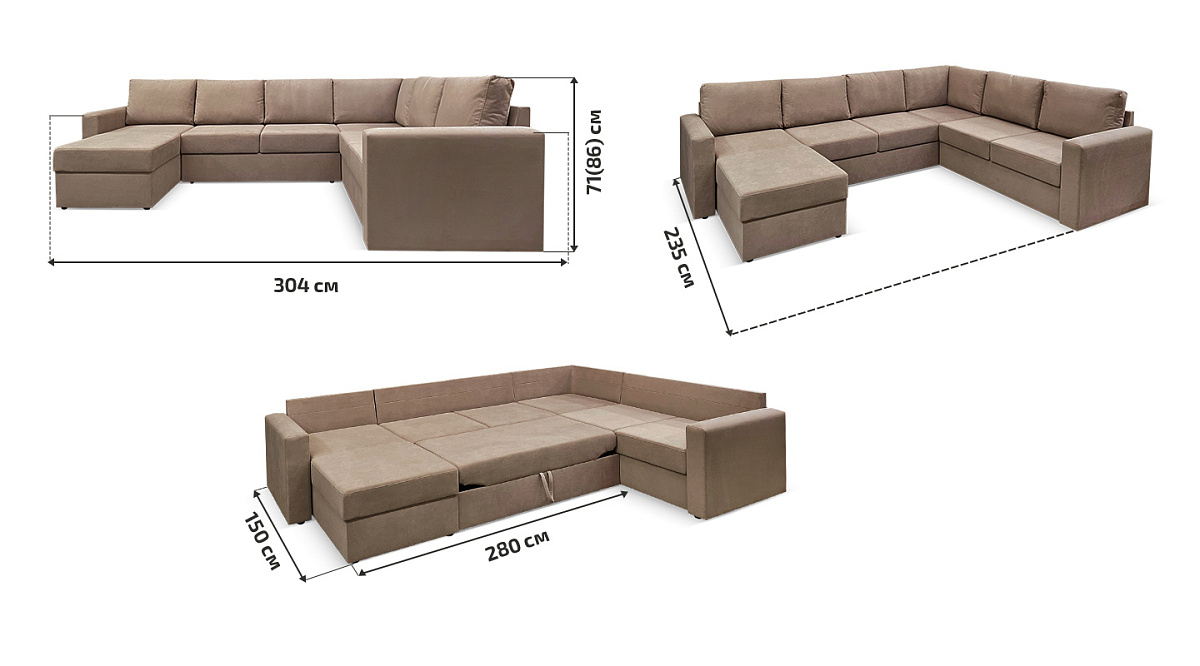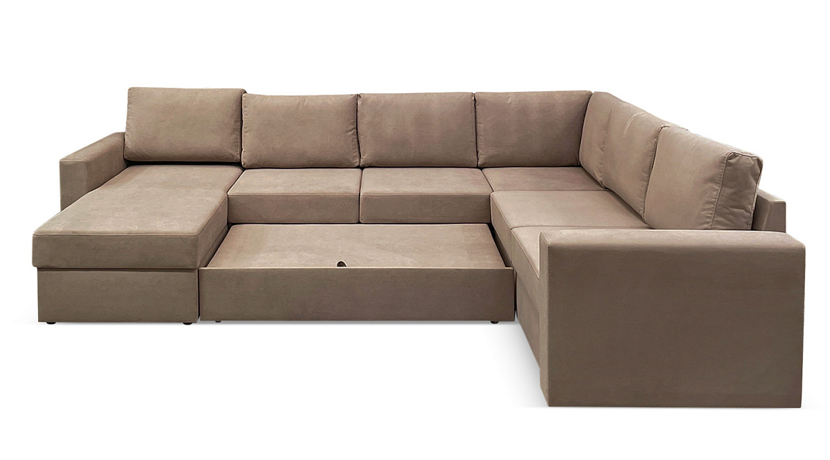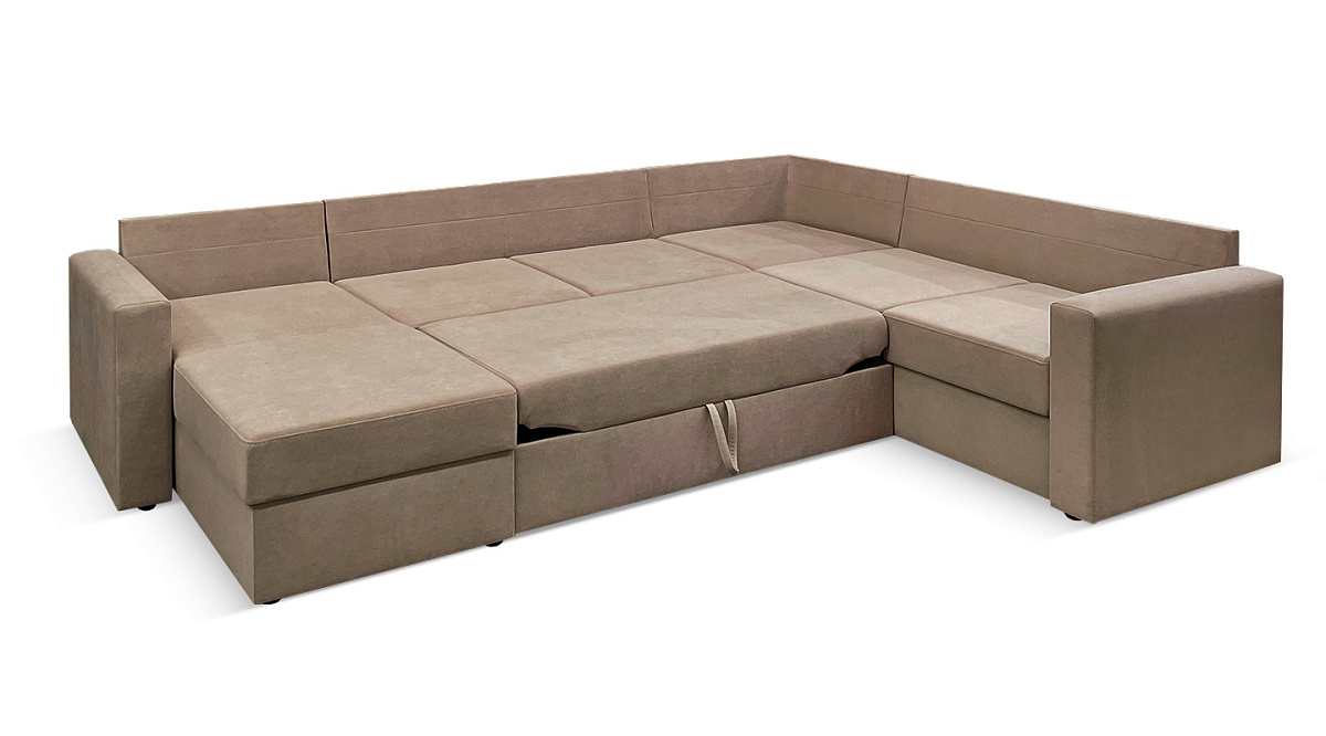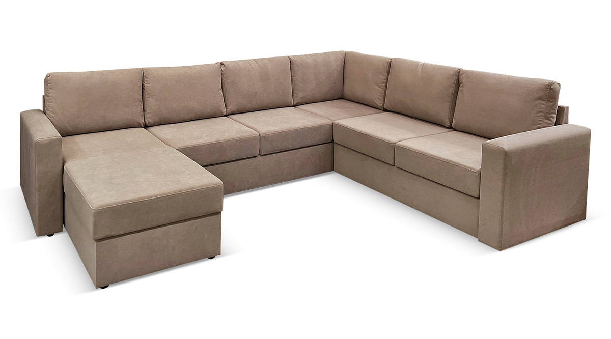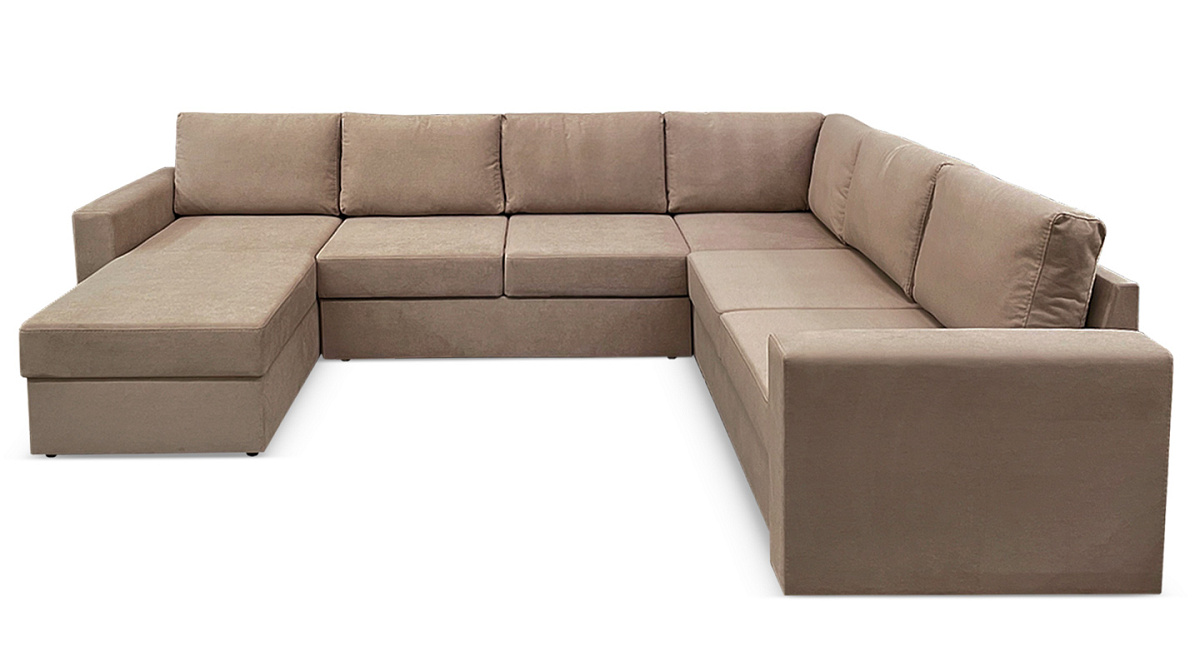 Большой диван для гостиной нужен для того, чтобы на нем поместились все. И всем было комфортно. Эта модель дивана надежна и выдерживает значительные нагрузки. В меру мягкий и упругий. И будет как новый даже спустя годы, без просиженных мест и ямок.
