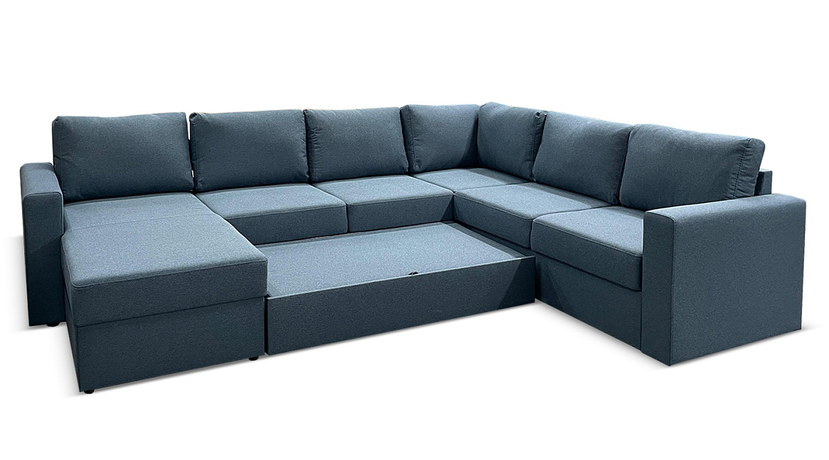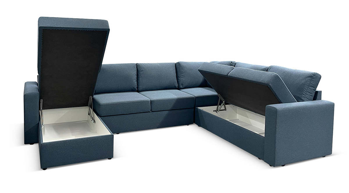 П-образный диван Кольдинг Синий рогожка