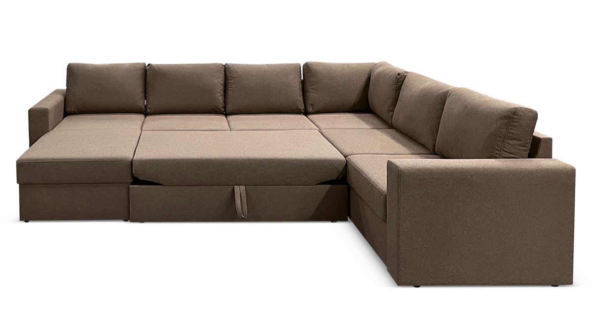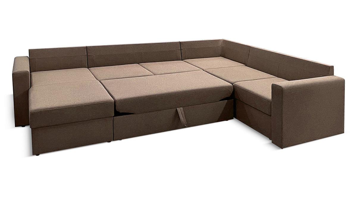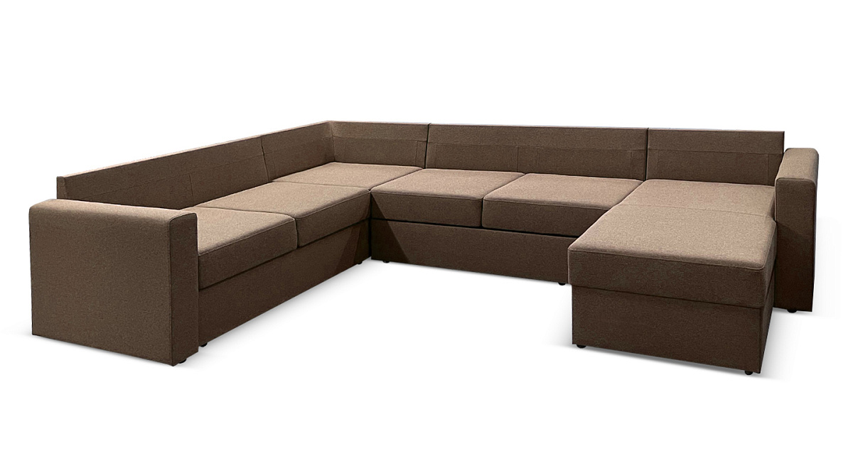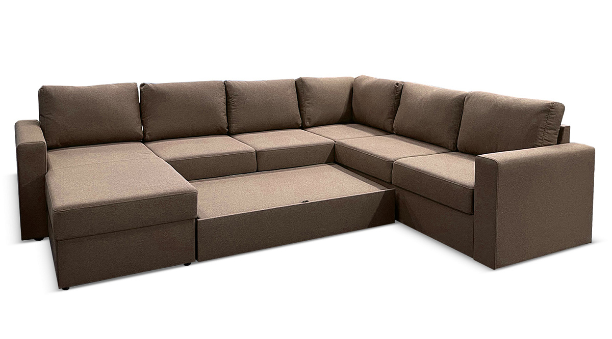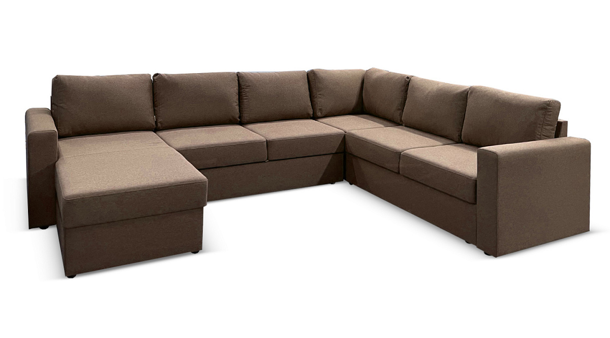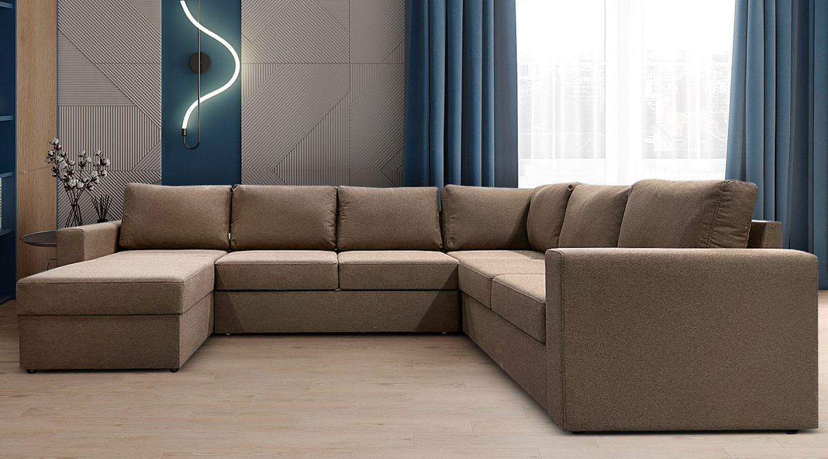 Большой диван для гостиной нужен для того, чтобы на нем поместились все. И всем было комфортно. Эта модель дивана надежна и выдерживает значительные нагрузки. В меру мягкий и упругий. И будет как новый даже спустя годы, без просиженных мест и ямок.
