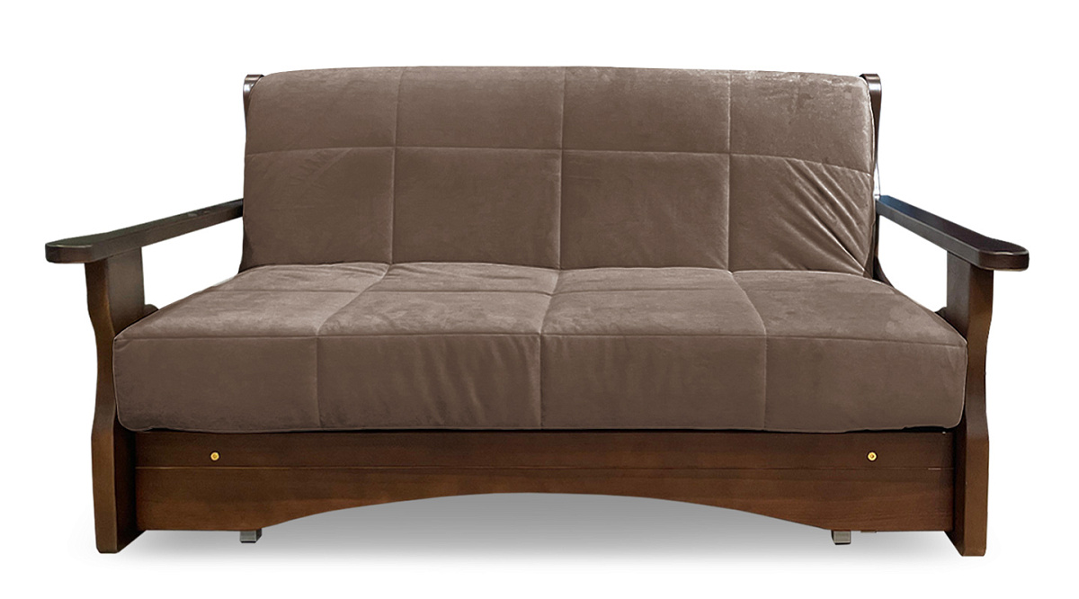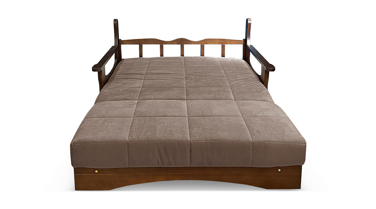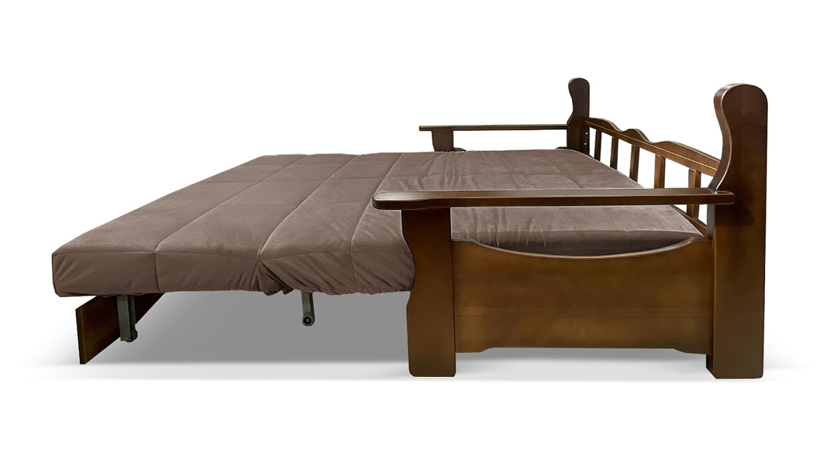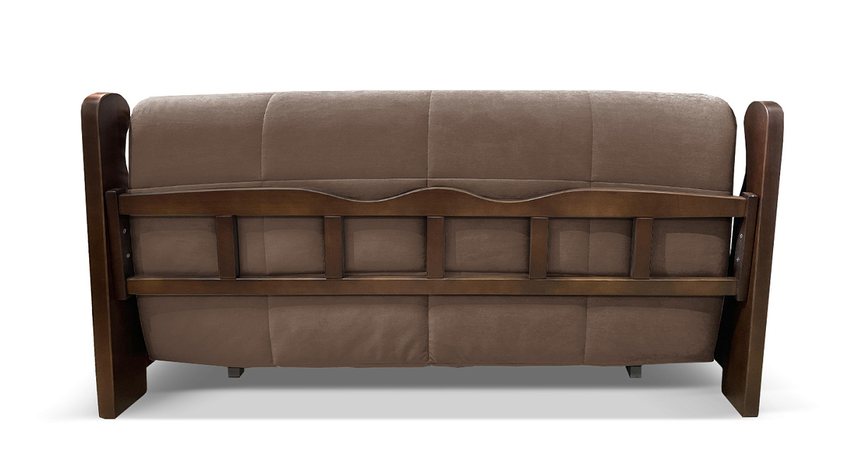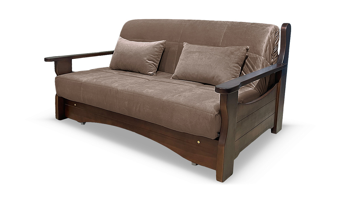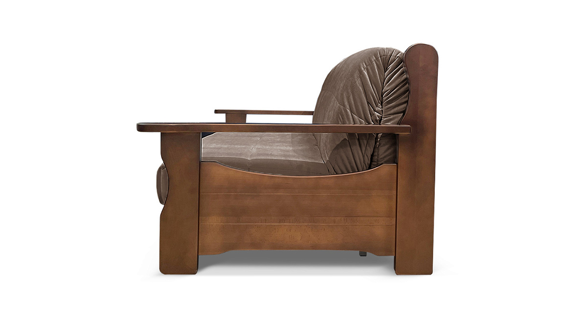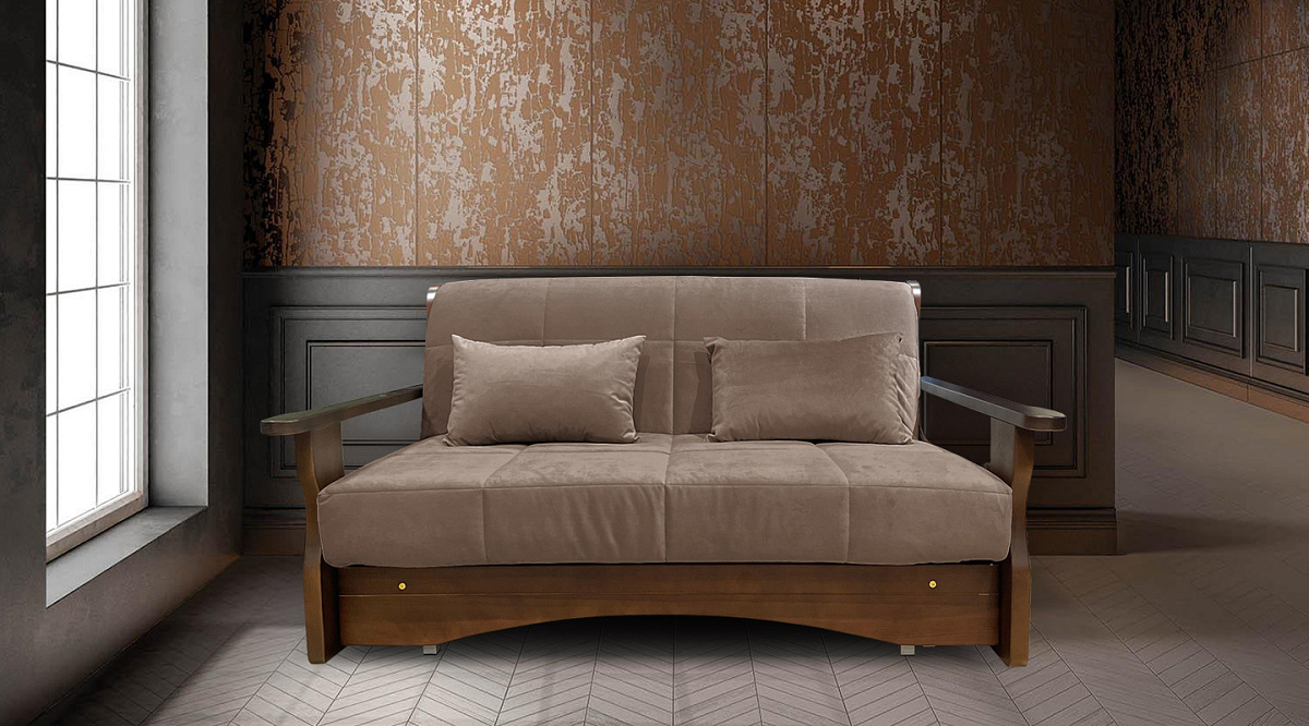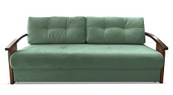 Прямой диван “аккордеон” с деревянным подлокотником из бука выглядит интересно и элегантно. Бук - это прежде всего красивая порода дерева с неповторимым узором на срезе и благородным окрасом. По внешнему виду мебель из бука не уступает более дорогостоящей продукции из массива дуба.