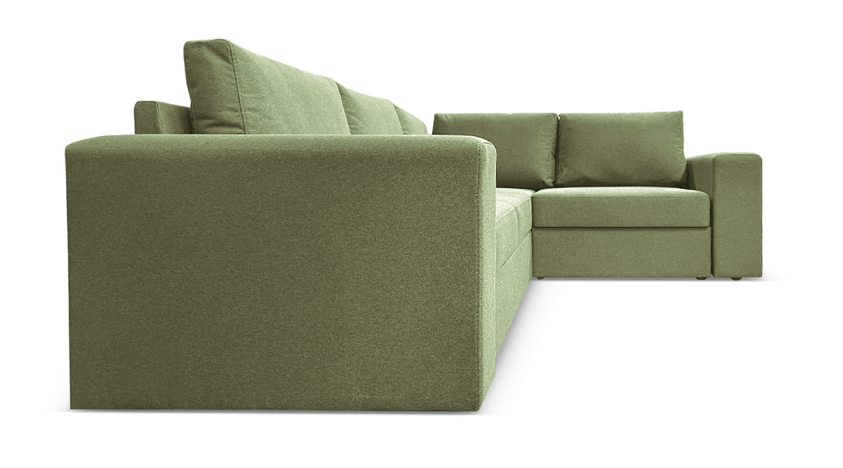 Главная отличительная черта этого дивана — элегантность и лаконичность, подчеркнутая комплектом из пяти подушек, что выполняют функцию спинки. Расположение оттоманки можно менять, а вместе с этим можно выбирать угол комнаты, куда поставить диван - правый или левый.