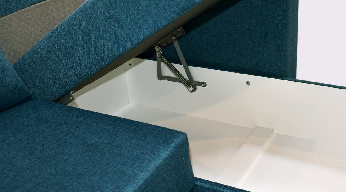 У дивана есть ящик для постельного белья, где можно хранить разные постельные принадлежности, гарантируя им сохранность и защиту от пыли и загрязнений. Короб предназначается для сезонных покрывал, пледов, подушек, постельных комплектов для гостей и членов семьи.