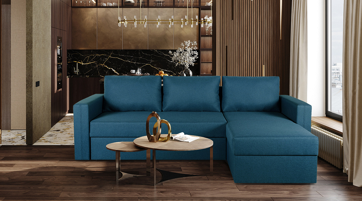 “Лунден” - классический небольшой и недорогой угловой диван. Именно этим он и ценен - отлично вписывается в наши типовые квартиры с маленькими комнатами и образует собой отдельное место для отдыха. При этом расположение оттоманки можно менять и ставить диван в любой угол - правый или левый.