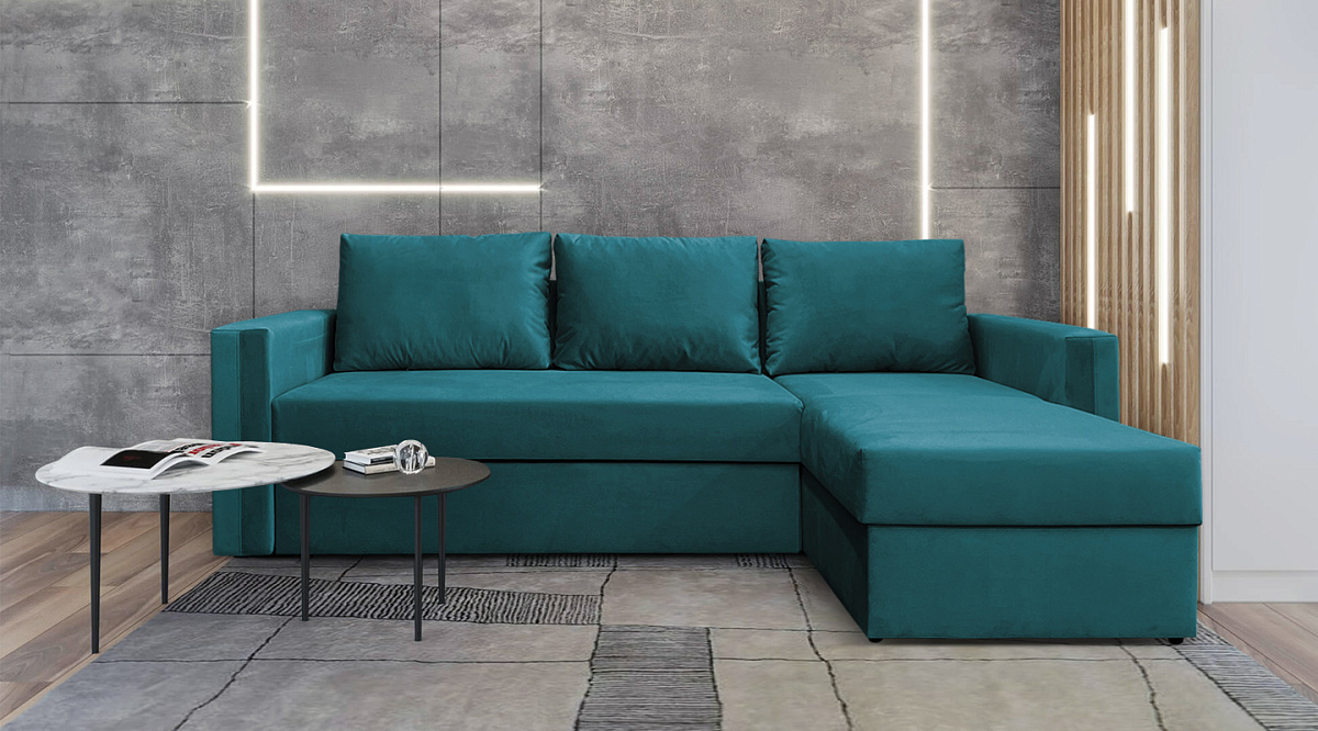 “Лунден” - классический небольшой и недорогой угловой диван. Именно этим он и ценен - отлично вписывается в наши типовые квартиры с маленькими комнатами и образует собой отдельное место для отдыха. При этом расположение оттоманки можно менять и ставить диван в любой угол - правый или левый.