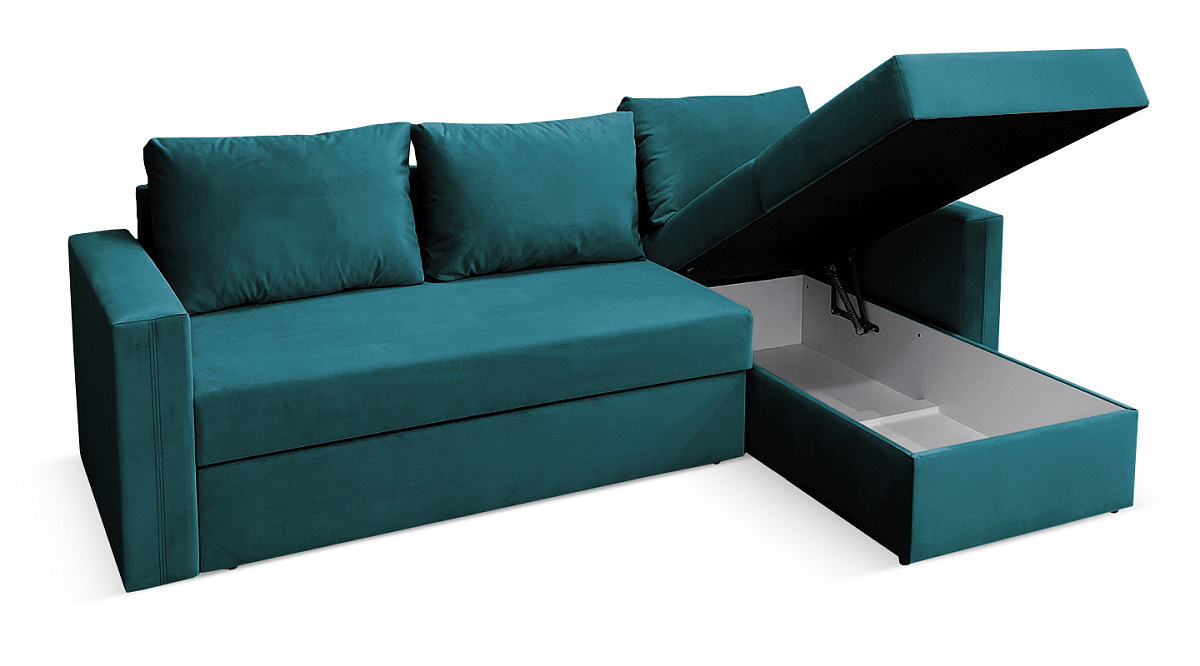 У дивана есть ящик для постельного белья, где можно хранить разные постельные принадлежности, гарантируя им сохранность и защиту от пыли и загрязнений. Короб предназначается для сезонных покрывал, пледов, подушек, постельных комплектов для гостей и членов семьи.