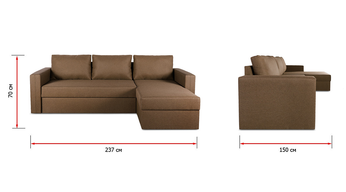“Лунден” - классический небольшой и недорогой угловой диван. Именно этим он и ценен - отлично вписывается в наши типовые квартиры с маленькими комнатами и образует собой отдельное место для отдыха. При этом расположение оттоманки можно менять и ставить диван в любой угол - правый или левый.