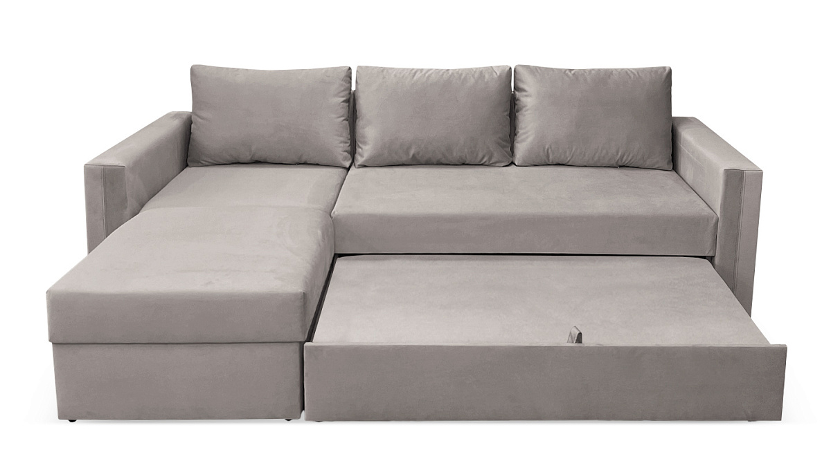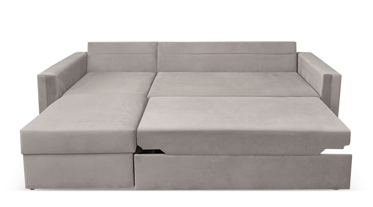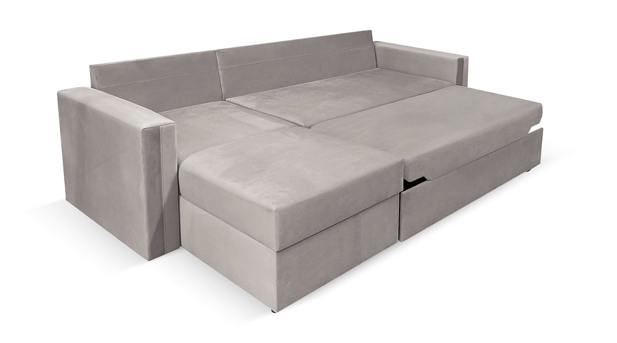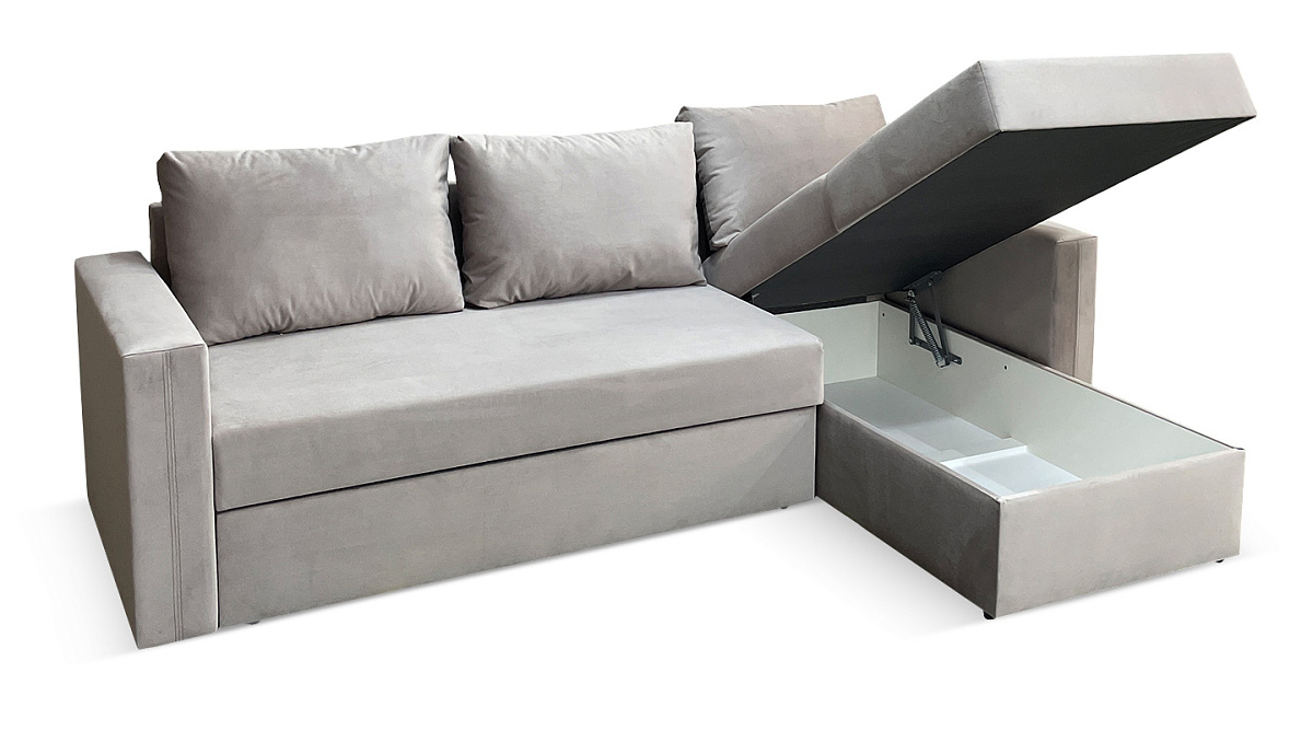 У дивана есть ящик для постельного белья, где можно хранить разные постельные принадлежности, гарантируя им сохранность и защиту от пыли и загрязнений. Короб предназначается для сезонных покрывал, пледов, подушек, постельных комплектов для гостей и членов семьи.