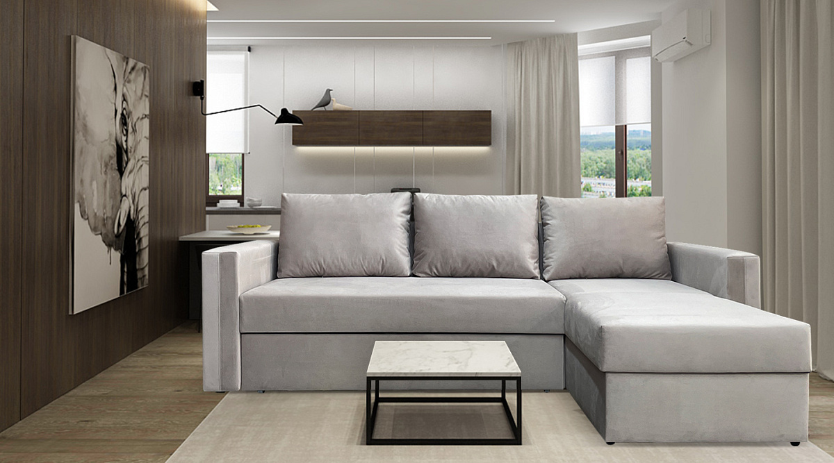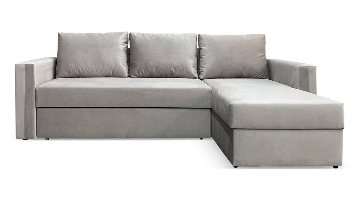 “Лунден” - классический небольшой и недорогой угловой диван. Именно этим он и ценен - отлично вписывается в наши типовые квартиры с маленькими комнатами и образует собой отдельное место для отдыха. При этом расположение оттоманки можно менять и ставить диван в любой угол - правый или левый.