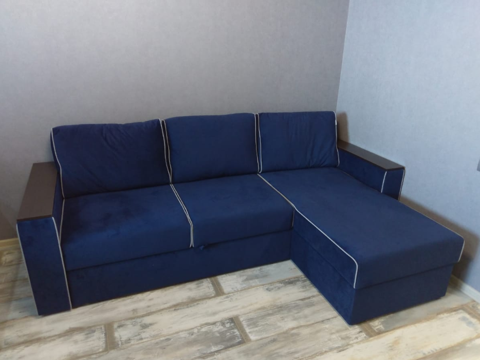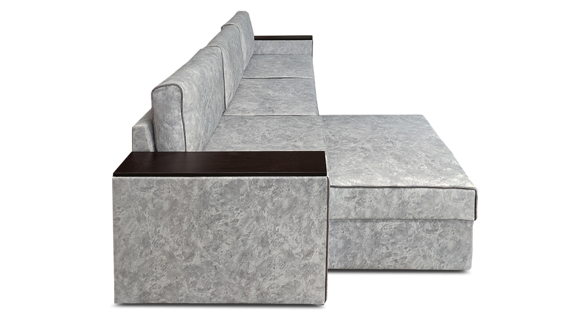 Деревянные накладки на подлокотниках заменят собой кофейный столик. На них можно поставить кружку, положить гаджеты, книги, крема. Сама вставка выполнена из ДСП, а её кромка - из ПВХ. Это препятствует расслоению и порче материала при его активном использовании и влажной уборке. Всё нужное с такими подлокотниками, всегда под рукой. Лишний раз вставать и идти за этими вещами не надо. Можно расслабиться.