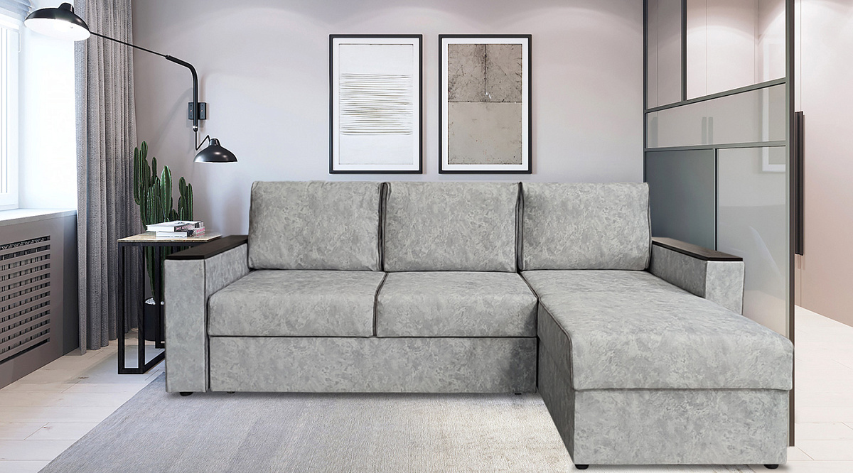 Удобный угловой диван “Меларен” многофункционален. Он оснащен механизмом трансформации "дельфин", который превращает его в ровную и просторную двуспальную кровать.