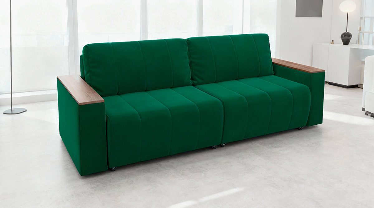 Прямой диван еврокнижка Осака Изумрудный велюр