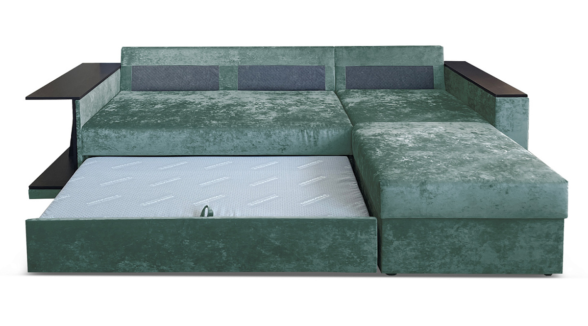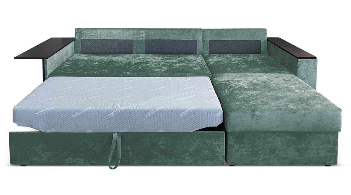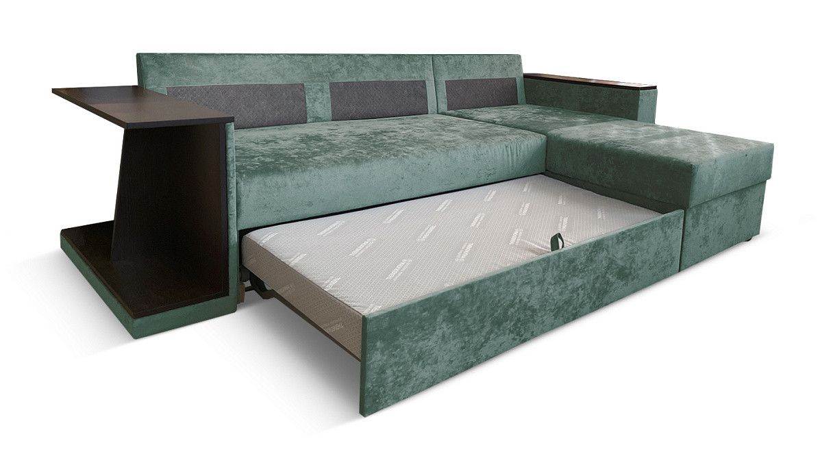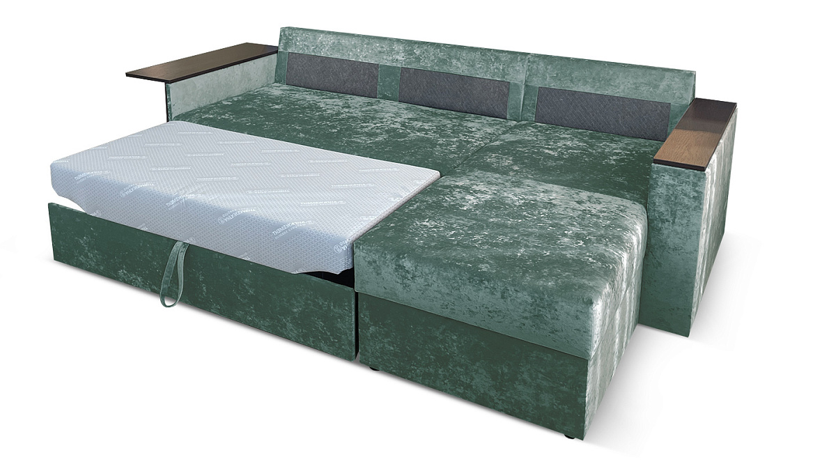 Диван “Берг” раскладывается в полноценную кровать. Это делается с помощью механизма “дельфин”. Спальное место получается просторным и ровным, без ям, перепадов. В основе наполнителя матраса - ППУ высокой плотности и блок независимых пружин.
