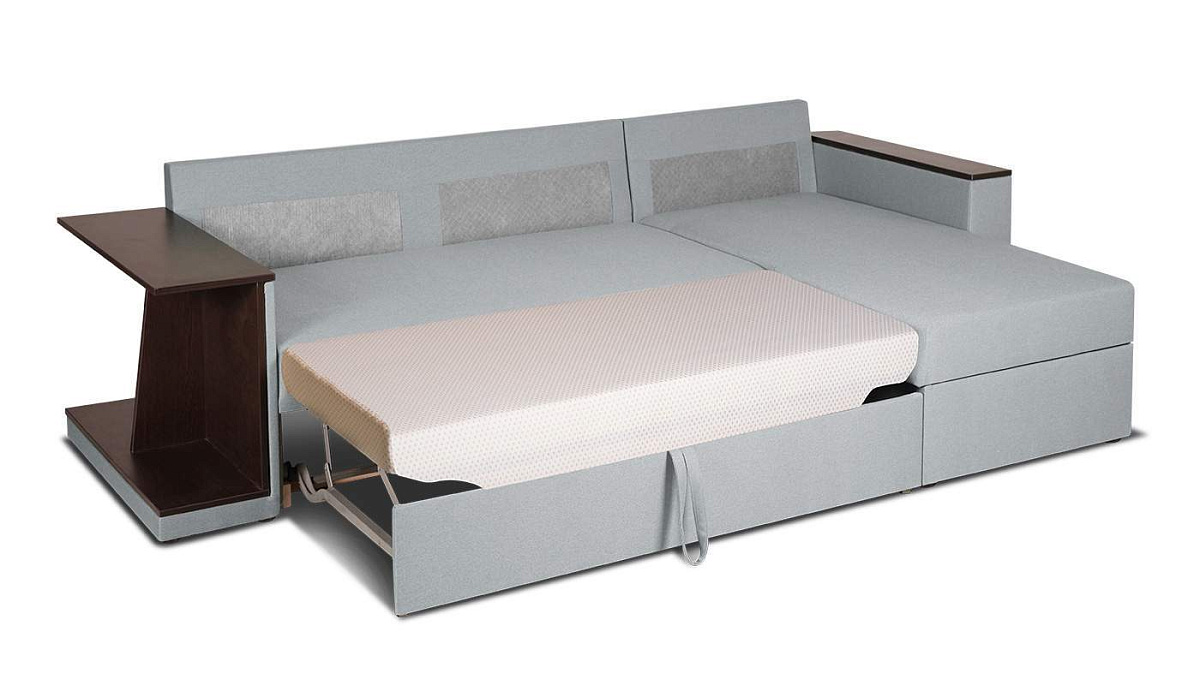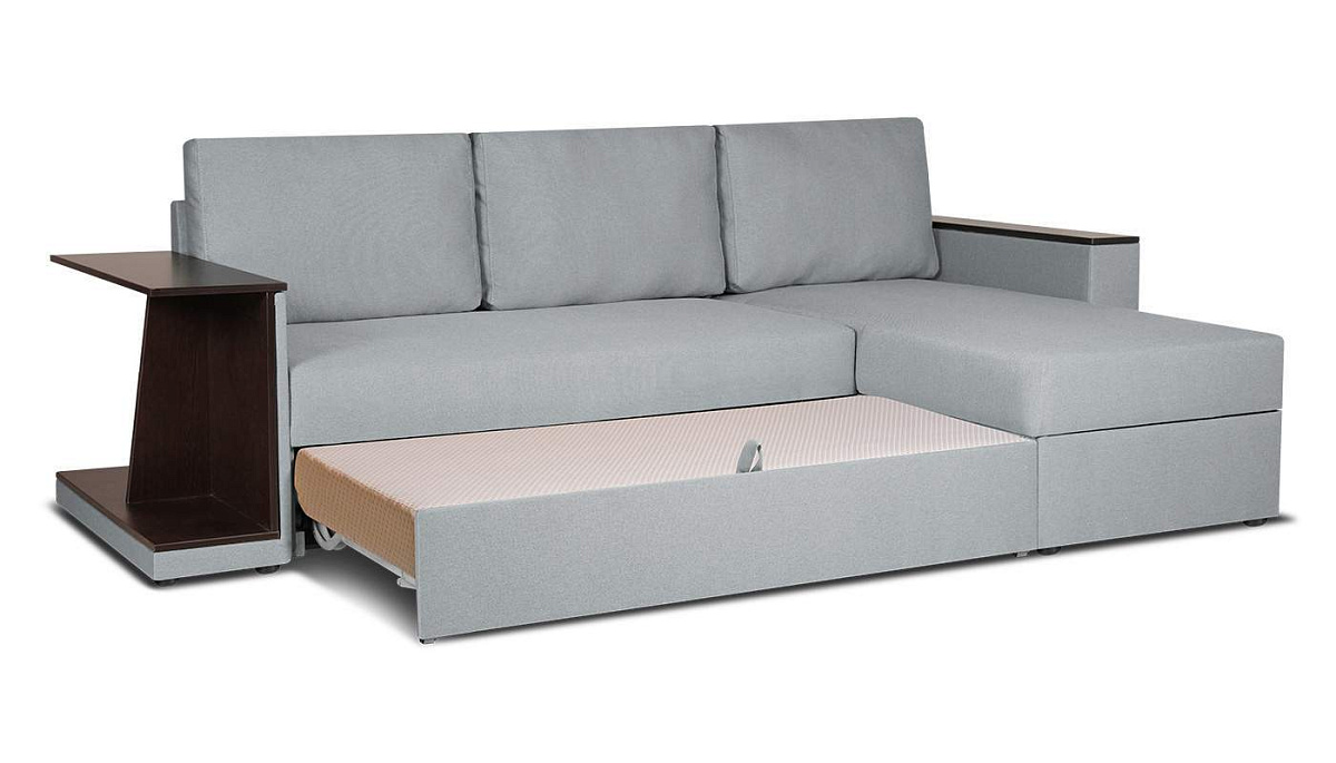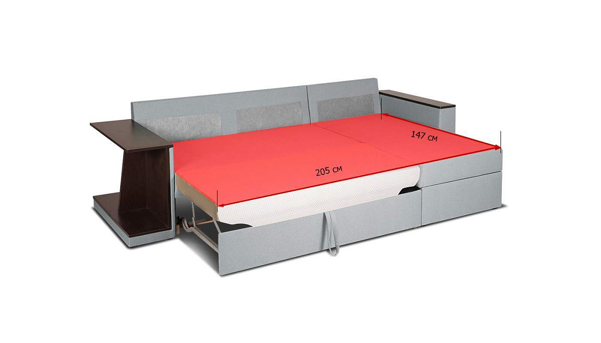 Диван “Берг” раскладывается в полноценную кровать. Это делается с помощью механизма “дельфин”. Спальное место получается просторным и ровным, без ям, перепадов. В основе наполнителя матраса - ППУ высокой плотности и блок независимых пружин.