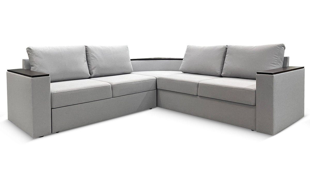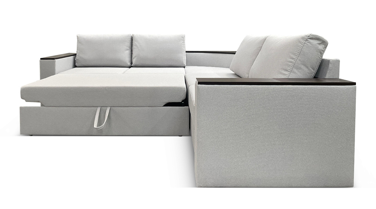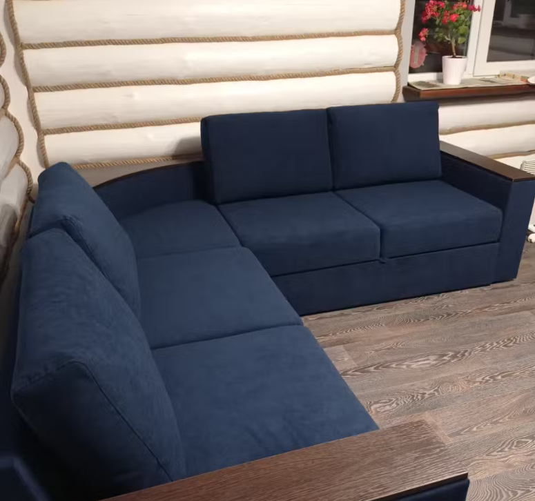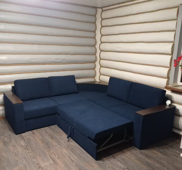 Деревянные накладки на подлокотниках заменят собой кофейный столик. На них можно поставить кружку, положить гаджеты, книги, крема. Сама вставка выполнена из ДСП, а её кромка - из ПВХ. Это препятствует расслоению и порче материала при его активном использовании и влажной уборке. Всё нужное с такими подлокотниками, всегда под рукой. Лишний раз вставать и идти за этими вещами не надо. Можно расслабиться.