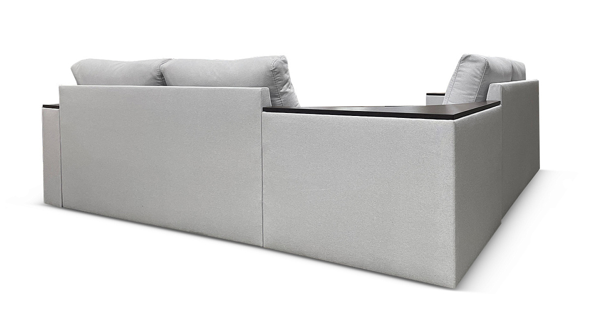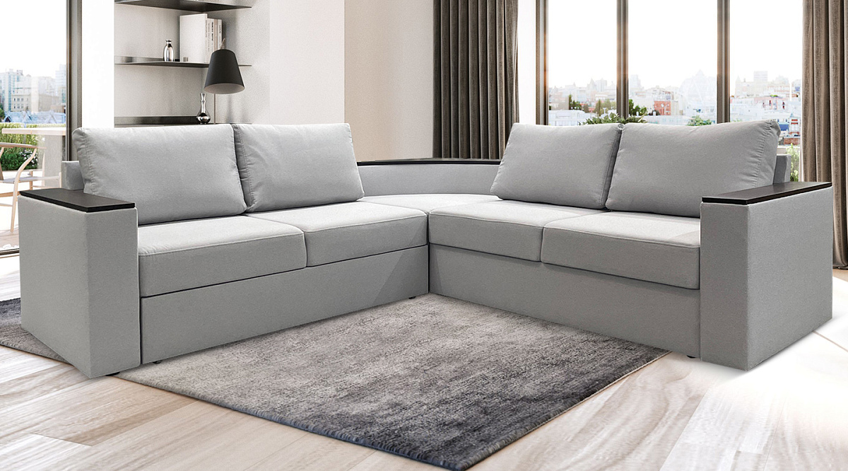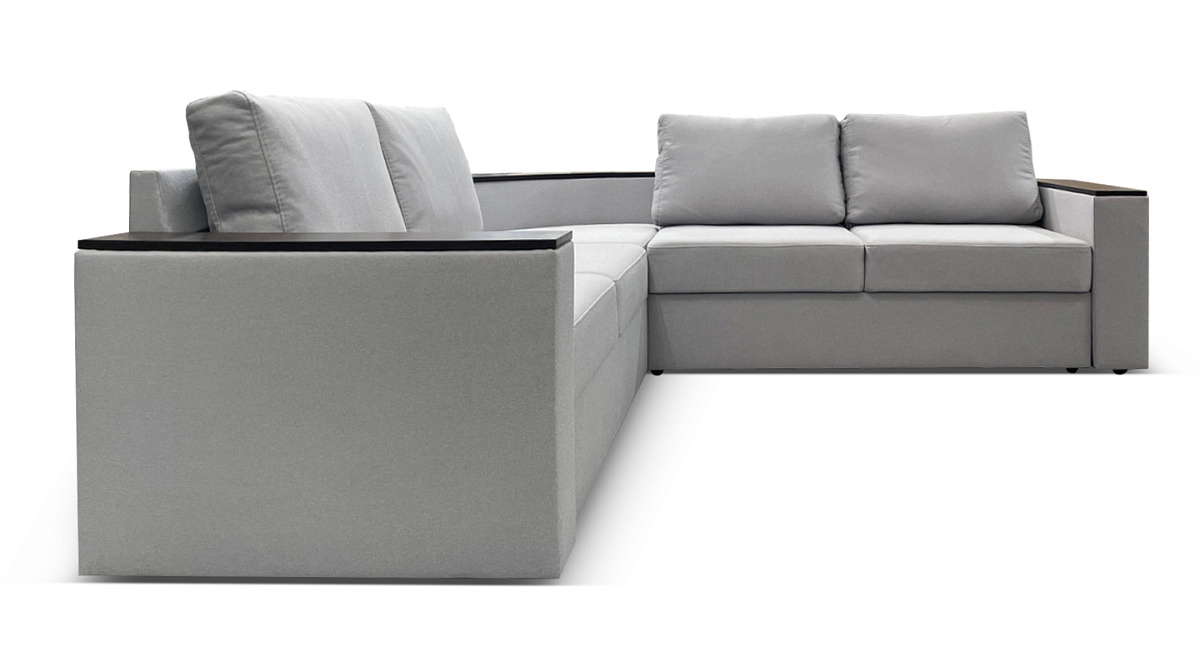“Фоборг” - это большой угловой диван со встроенным столиком в центре и деревянными вставками в подлокотниках. Всё это - дополнительный функционал, благодаря которому можно сократить число предметов в комнате, обойтись, например, без тумбочки. На подлокотник можно поставить книжку или положить книгу, пульт, телефон. Столик в угловом секторе можно использовать как в декоративных целях, украсив сувенирами, так и в практических, используя как полку для книг или небольшой настольной лампы.