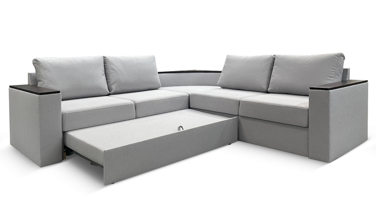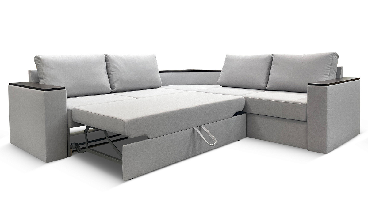 Оптимальная глубина дивана делает его очень удобным местом для посиделок с семьей или гостями. Если разложить диван - получится просторная двуспальная кровать. Делается это за несколько секунд, благодаря механизму трансформации “дельфин”. Скрытая часть дивана полностью выдвигается и приподнимается вверх с помощью потайного ремешка. Две части дивана выравниваются, образуя ровное спальное место.