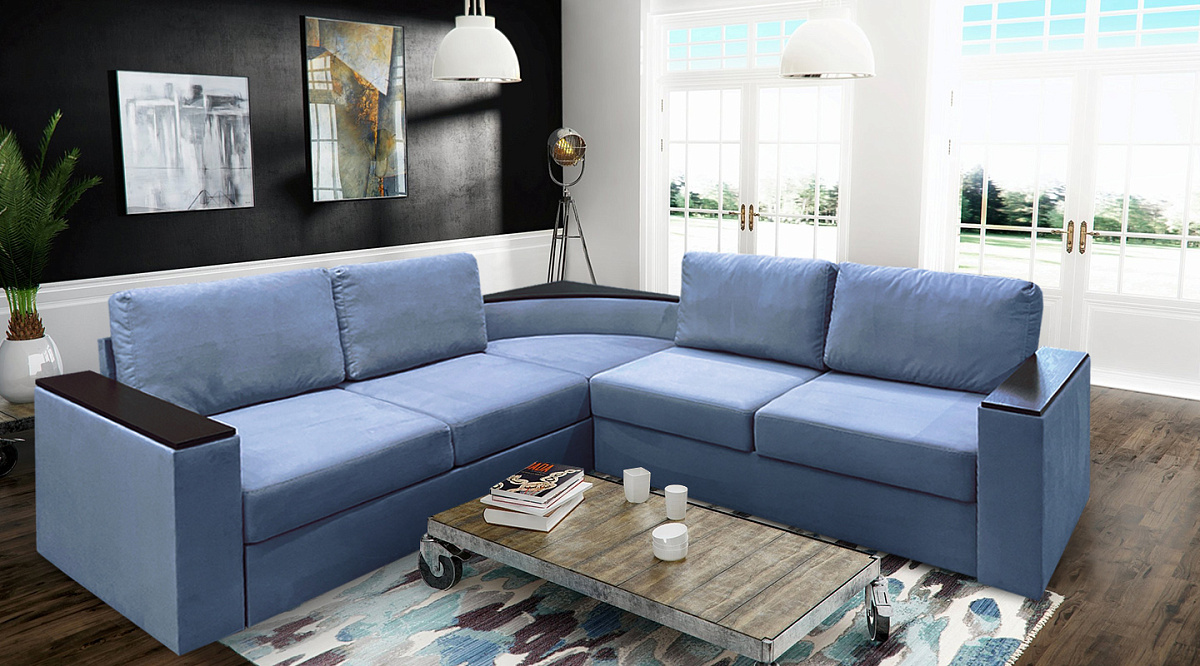 “Фоборг” - это большой угловой диван со встроенным столиком в центре и деревянными вставками в подлокотниках. Всё это - дополнительный функционал, благодаря которому можно сократить число предметов в комнате, обойтись, например, без тумбочки. На подлокотник можно поставить книжку или положить книгу, пульт, телефон. Столик в угловом секторе можно использовать как в декоративных целях, украсив сувенирами, так и в практических, используя как полку для книг или небольшой настольной лампы.