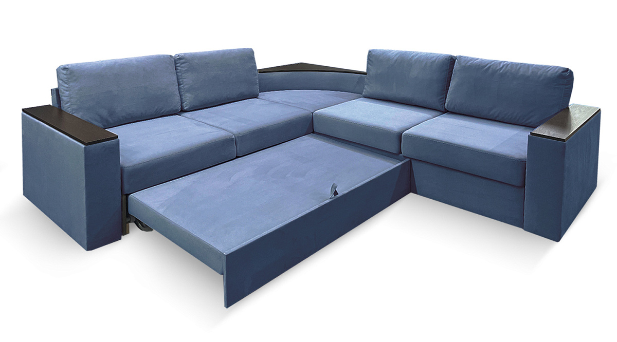 Оптимальная глубина дивана делает его очень удобным местом для посиделок с семьей или гостями. Если разложить диван - получится просторная двуспальная кровать. Делается это за несколько секунд, благодаря механизму трансформации “дельфин”. Скрытая часть дивана полностью выдвигается и приподнимается вверх с помощью потайного ремешка. Две части дивана выравниваются, образуя ровное спальное место.