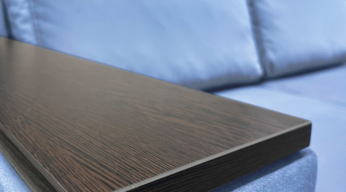 Деревянные накладки на подлокотниках заменят собой кофейный столик. На них можно поставить кружку, положить гаджеты, книги, крема. Сама вставка выполнена из ДСП, а её кромка - из ПВХ. Это препятствует расслоению и порче материала при его активном использовании и влажной уборке. Всё нужное с такими подлокотниками, всегда под рукой. Лишний раз вставать и идти за этими вещами не надо. Можно расслабиться.