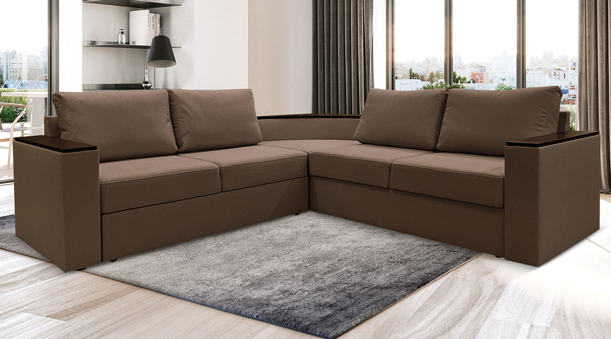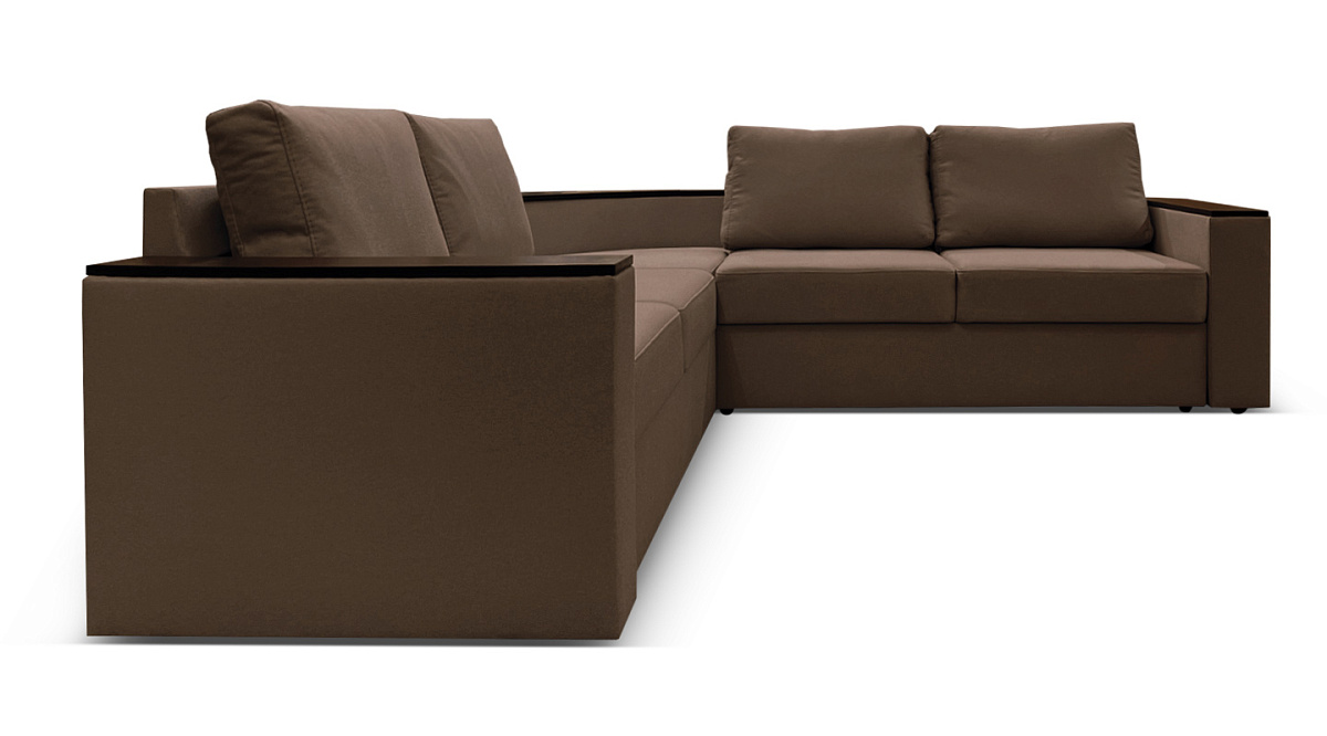 “Фоборг” - это большой угловой диван со встроенным столиком в центре и деревянными вставками в подлокотниках. Всё это - дополнительный функционал, благодаря которому можно сократить число предметов в комнате, обойтись, например, без тумбочки. На подлокотник можно поставить книжку или положить книгу, пульт, телефон. Столик в угловом секторе можно использовать как в декоративных целях, украсив сувенирами, так и в практических, используя как полку для книг или небольшой настольной лампы.
