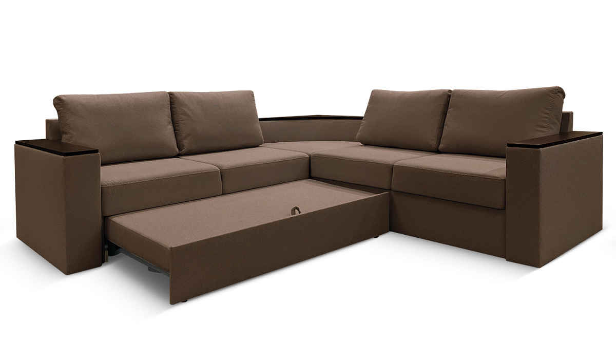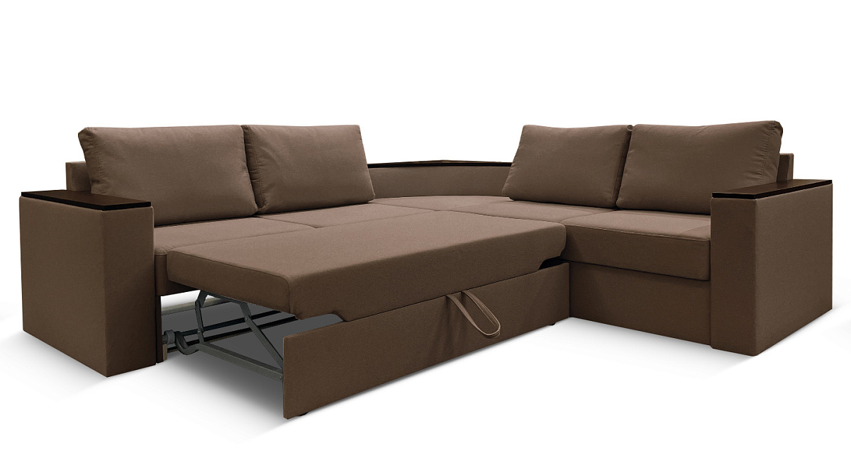 Оптимальная глубина дивана делает его очень удобным местом для посиделок с семьей или гостями. Если разложить диван - получится просторная двуспальная кровать. Делается это за несколько секунд, благодаря механизму трансформации “дельфин”. Скрытая часть дивана полностью выдвигается и приподнимается вверх с помощью потайного ремешка. Две части дивана выравниваются, образуя ровное спальное место.